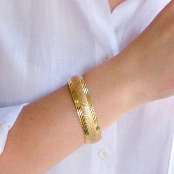 Altın Kaplama Simli Çizgili Model 1.5 cm İmitasyon Bilezik BLZ-3133