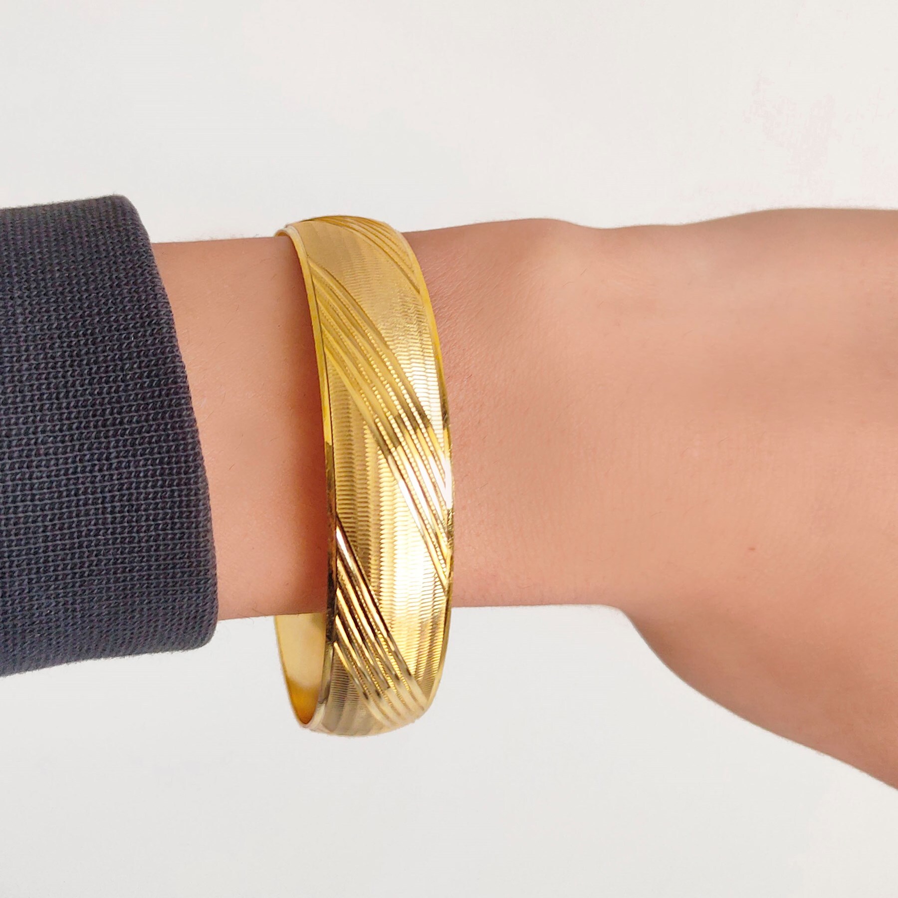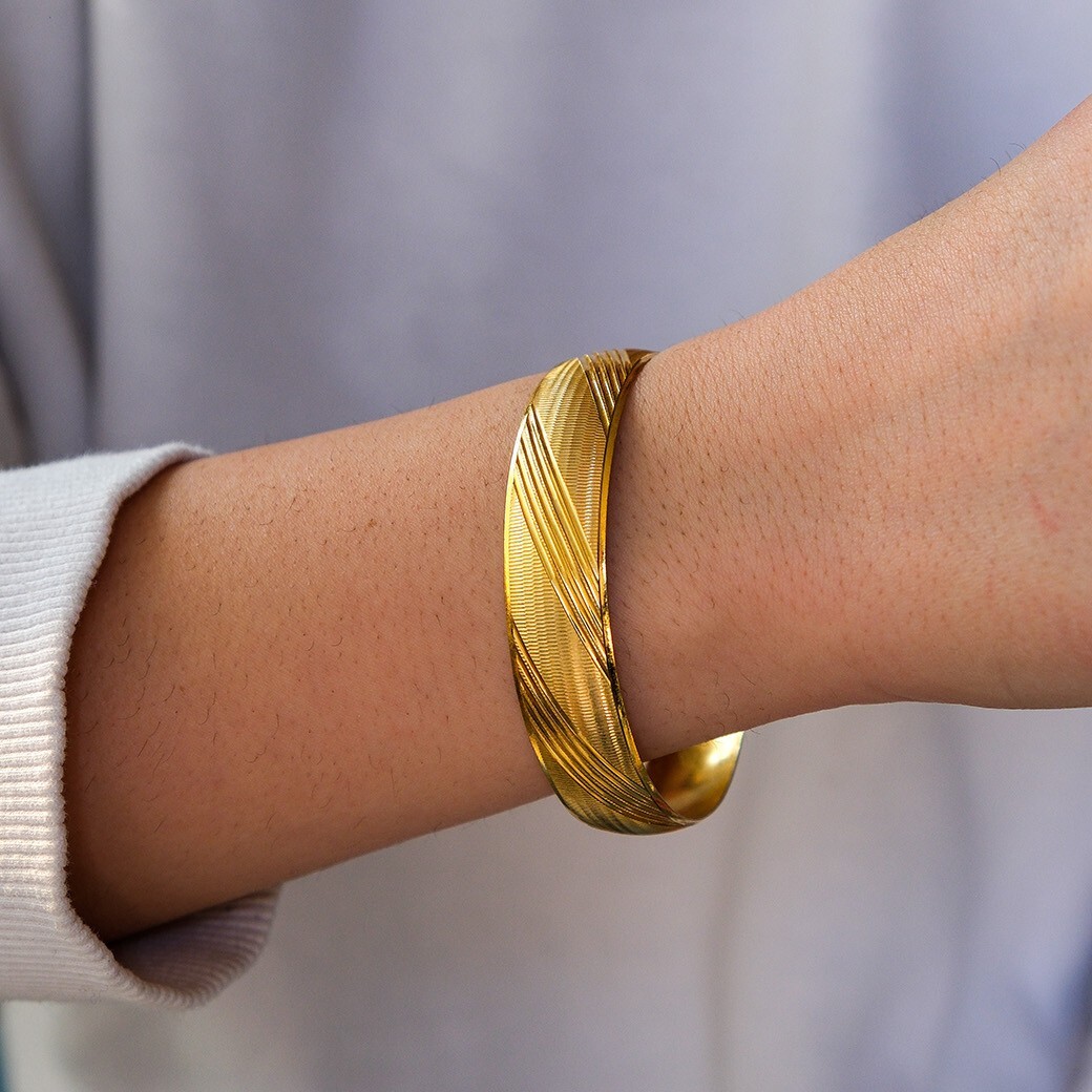 Toptan İmitasyon Altın Kaplama İmitasyon Bilezik 1.5 CM Çizgi Desenli BLZ-1059 Kalite ve Güvence