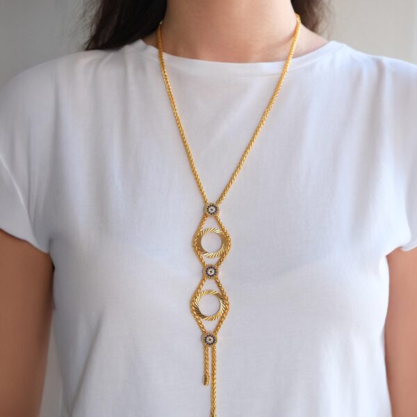 Altın Kaplama İki Çeyrek Çerçeveli Kolye KLY-662