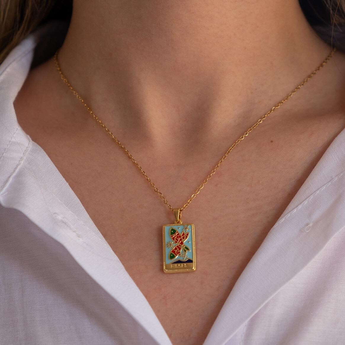 Toptan Çelik Kolye – Çelik Kolye, Altın Kaplama Balık Burcu Kadın Kolye K-133