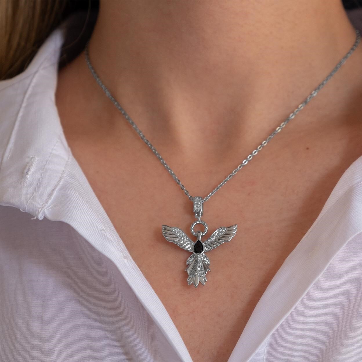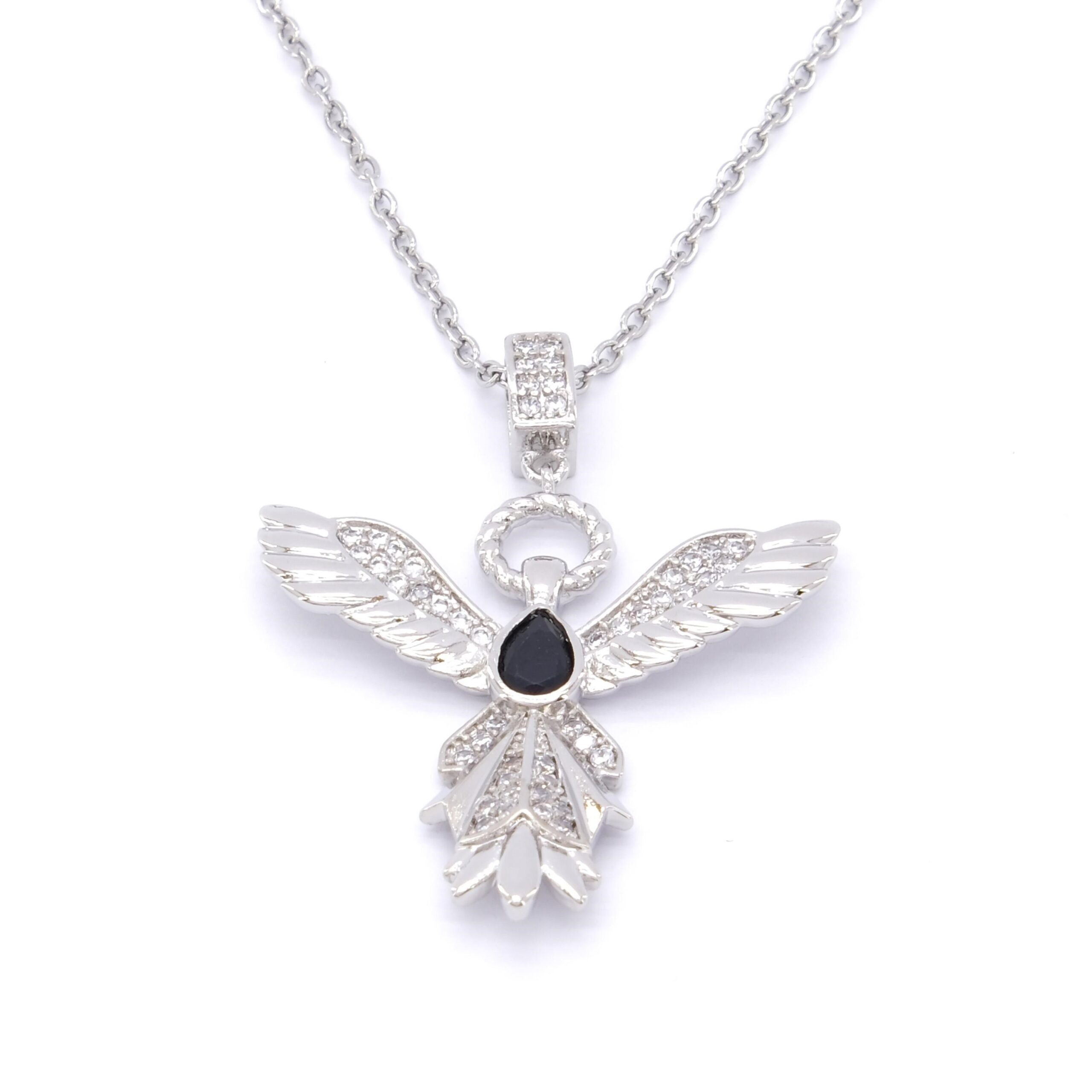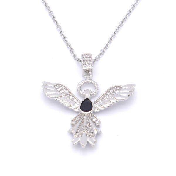 Toptan Çelik Kolye – Çelik Kolye, Kadın Melek Kolye, Siyah Taşlı Kolye K-100