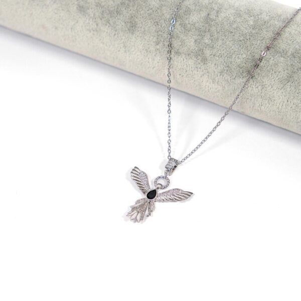 Çelik Kolye, Kadın Melek Kolye, Siyah Taşlı Kolye K-100