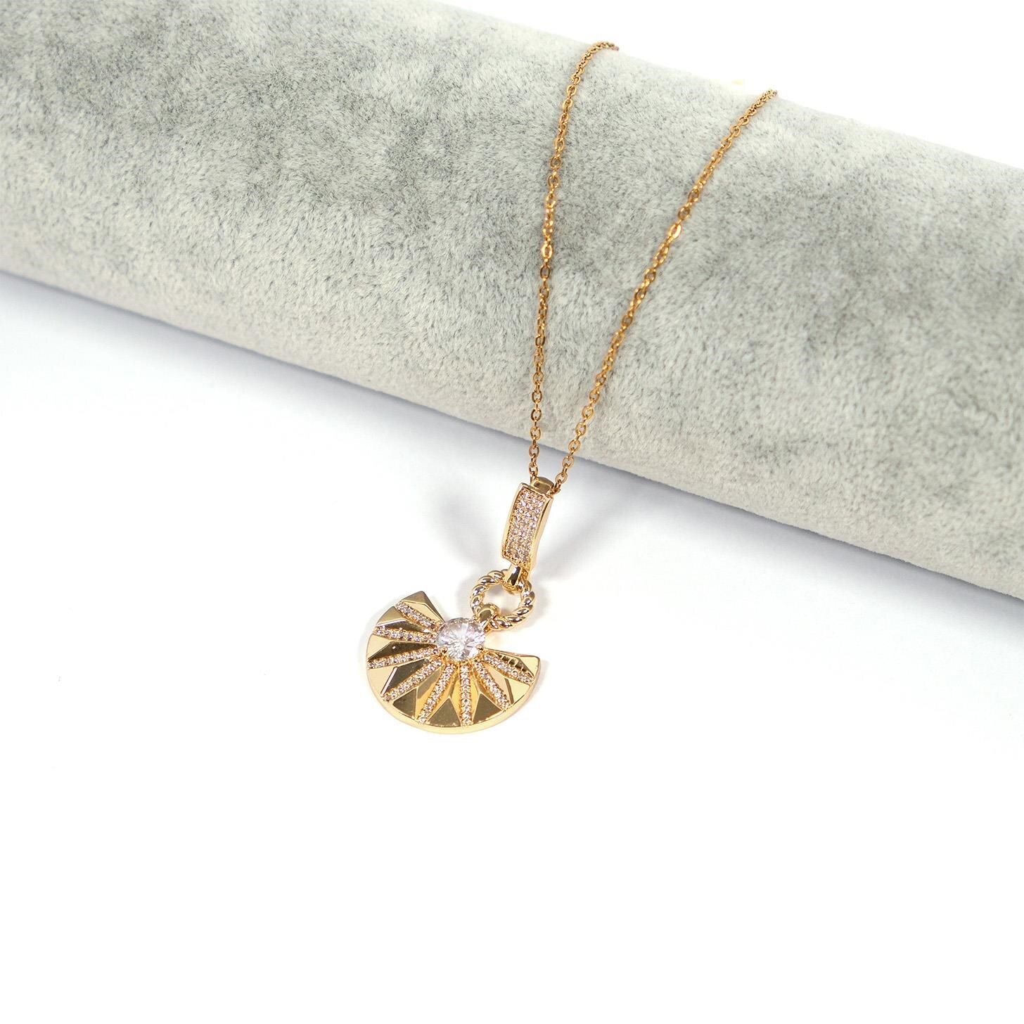 Paslanmaz Çelik Kadın Kolye, Altın Kaplama Yelpaze Kolye K-129