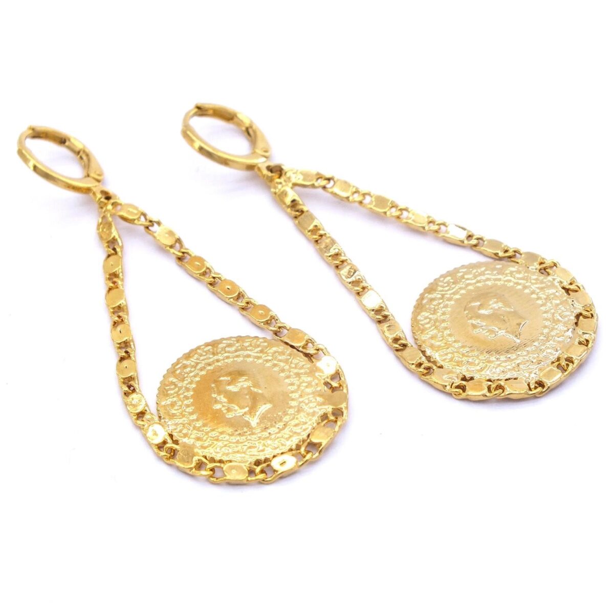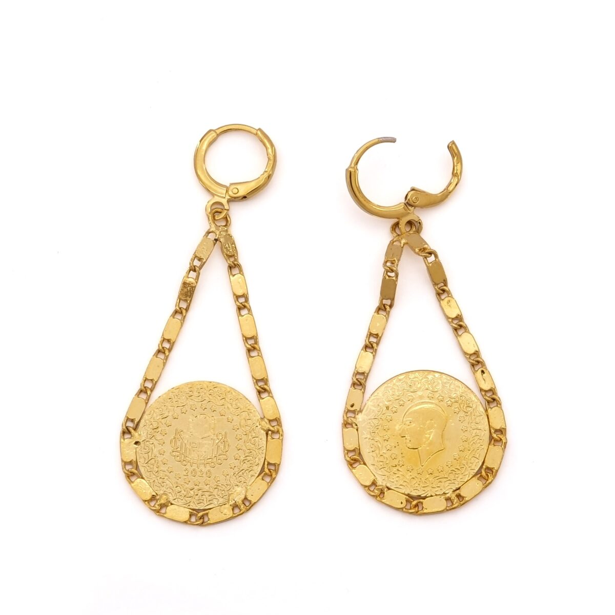 Altın Kaplama Küpe imitasyon Çeyrekli – Arpa Zincirli KP-105