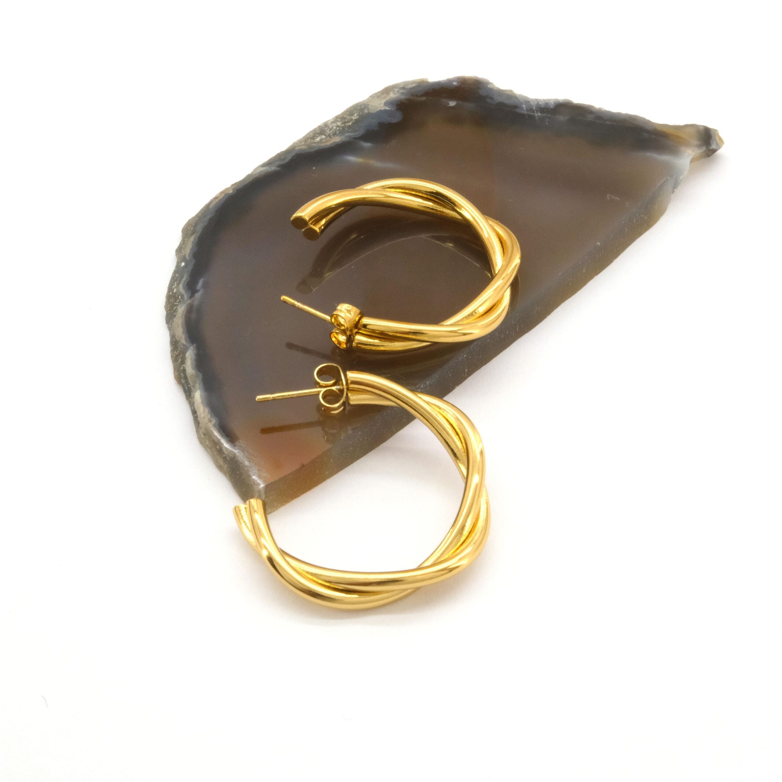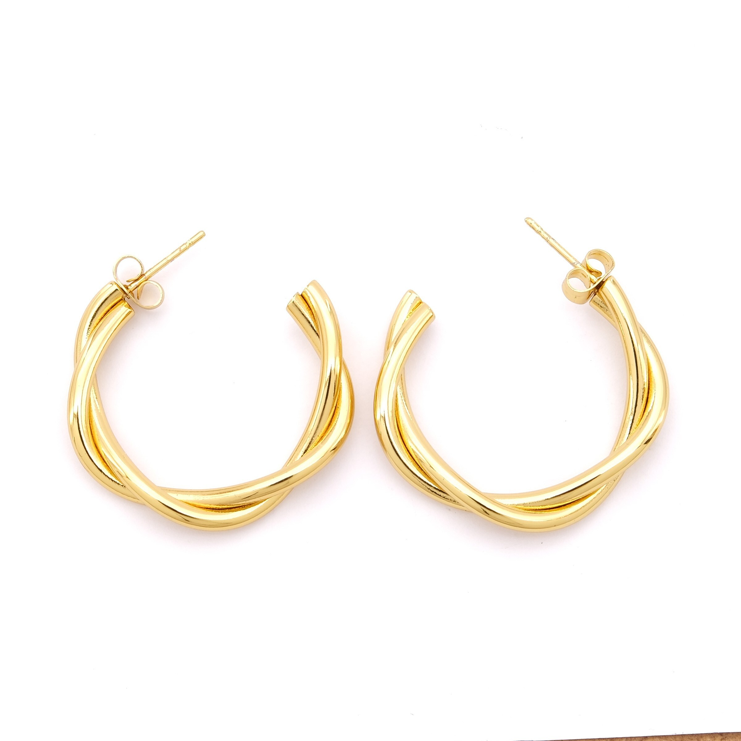 Toptan Çelik Küpe Modelleri – Çelik Halka Küpe Altın Kaplama Kadın Burgu Halka Model UNK-799