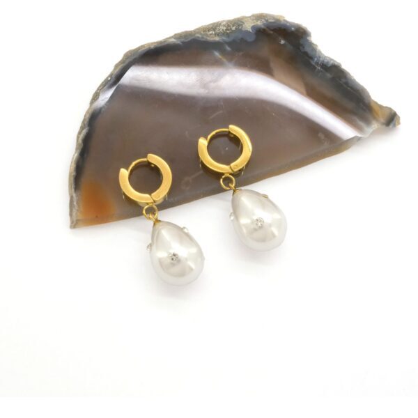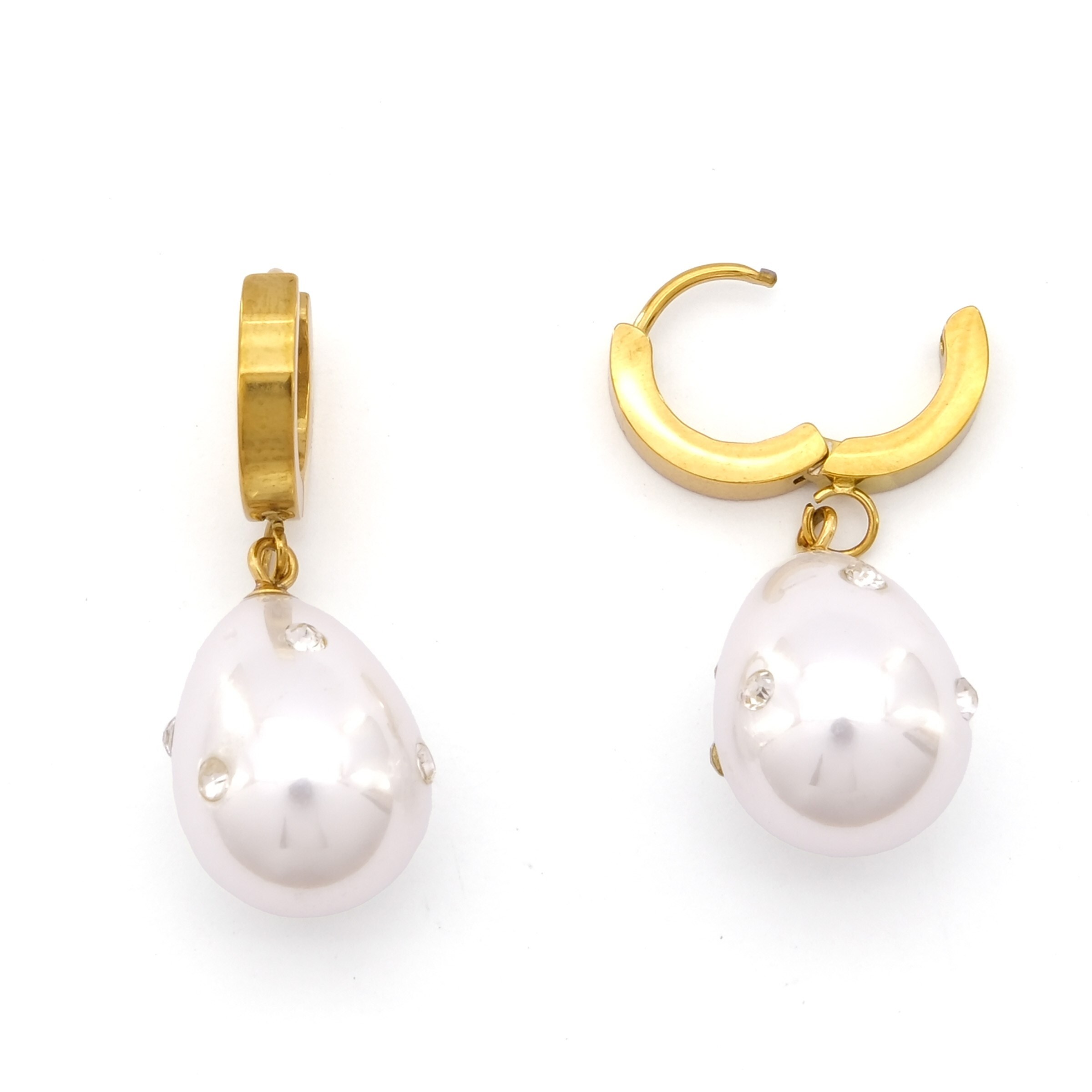 Toptan Çelik Küpe Modelleri – Çelik Sallatılı Küpe Altın Kaplama Kadın İnci Model UNK-797