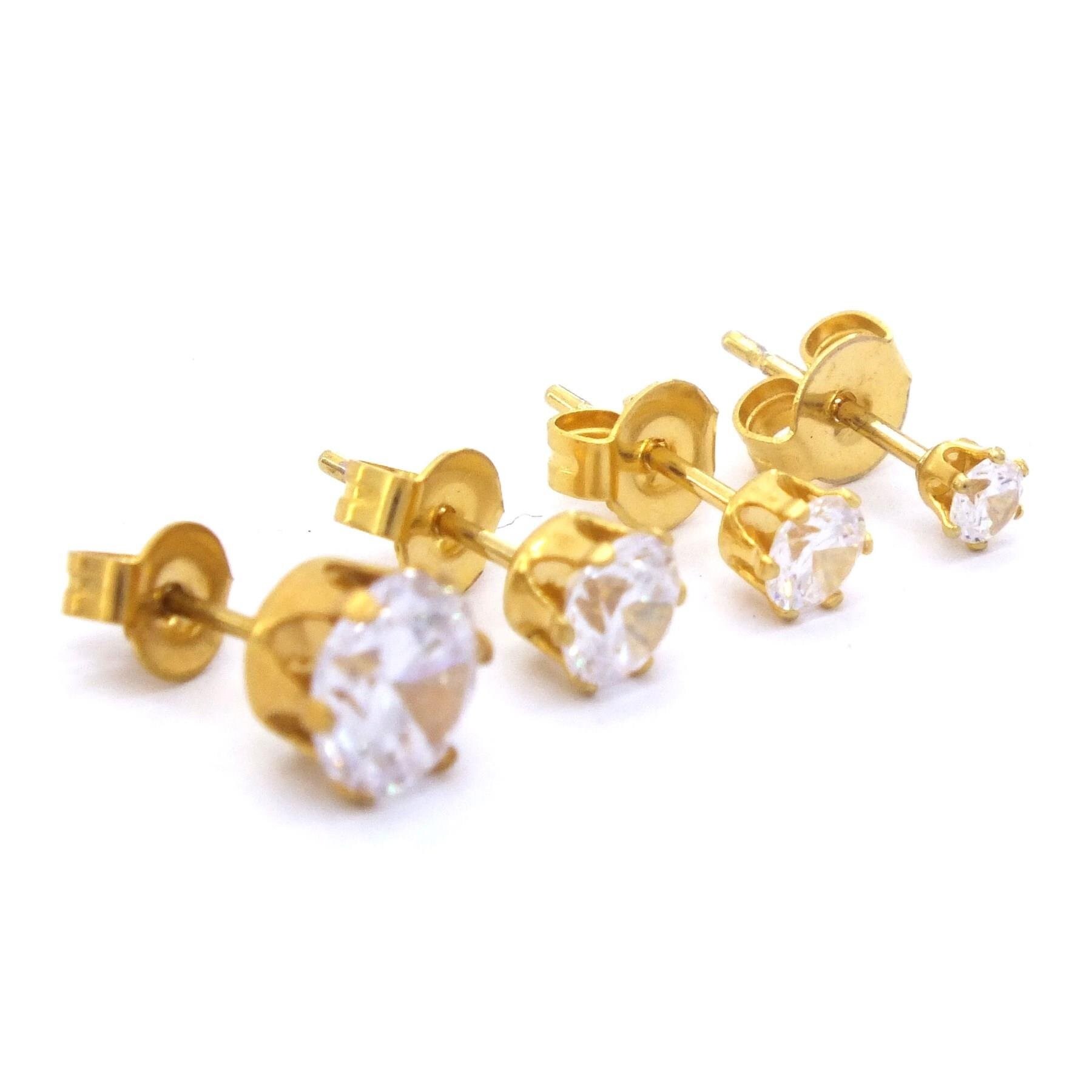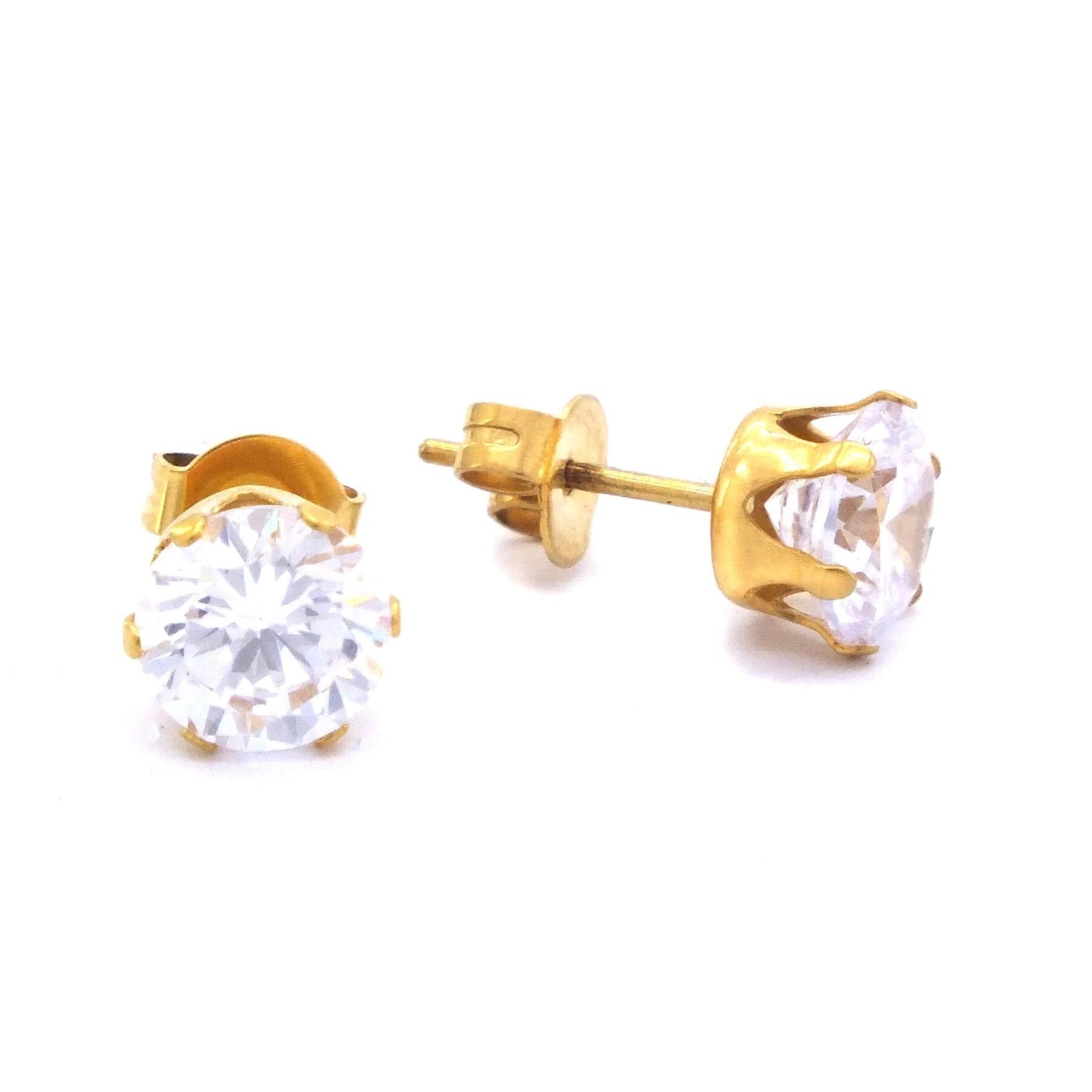 Çelik Taşlı Küpe – Altın Kaplama Tektaş Küpe
