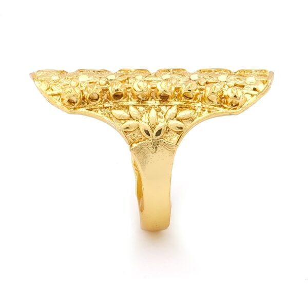 Toptan Çelik Yüzük Modelleri – Çelik Yüzük Kadın Altın Kaplama Çiçek Desenli Kaburga YZK-492