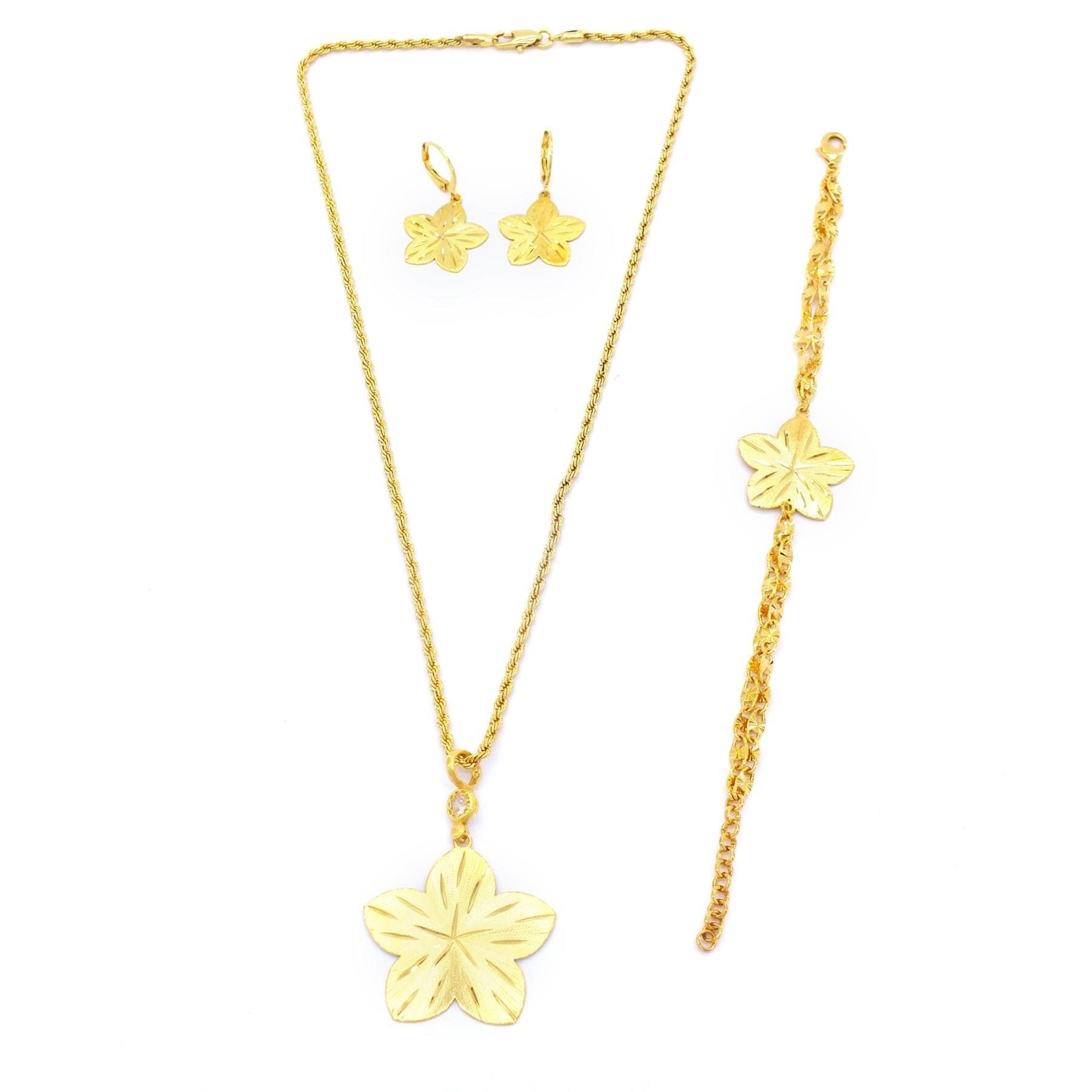 Altın Kaplama Çiçek Şekilli Kolye Küpe Bileklik Set SET-111