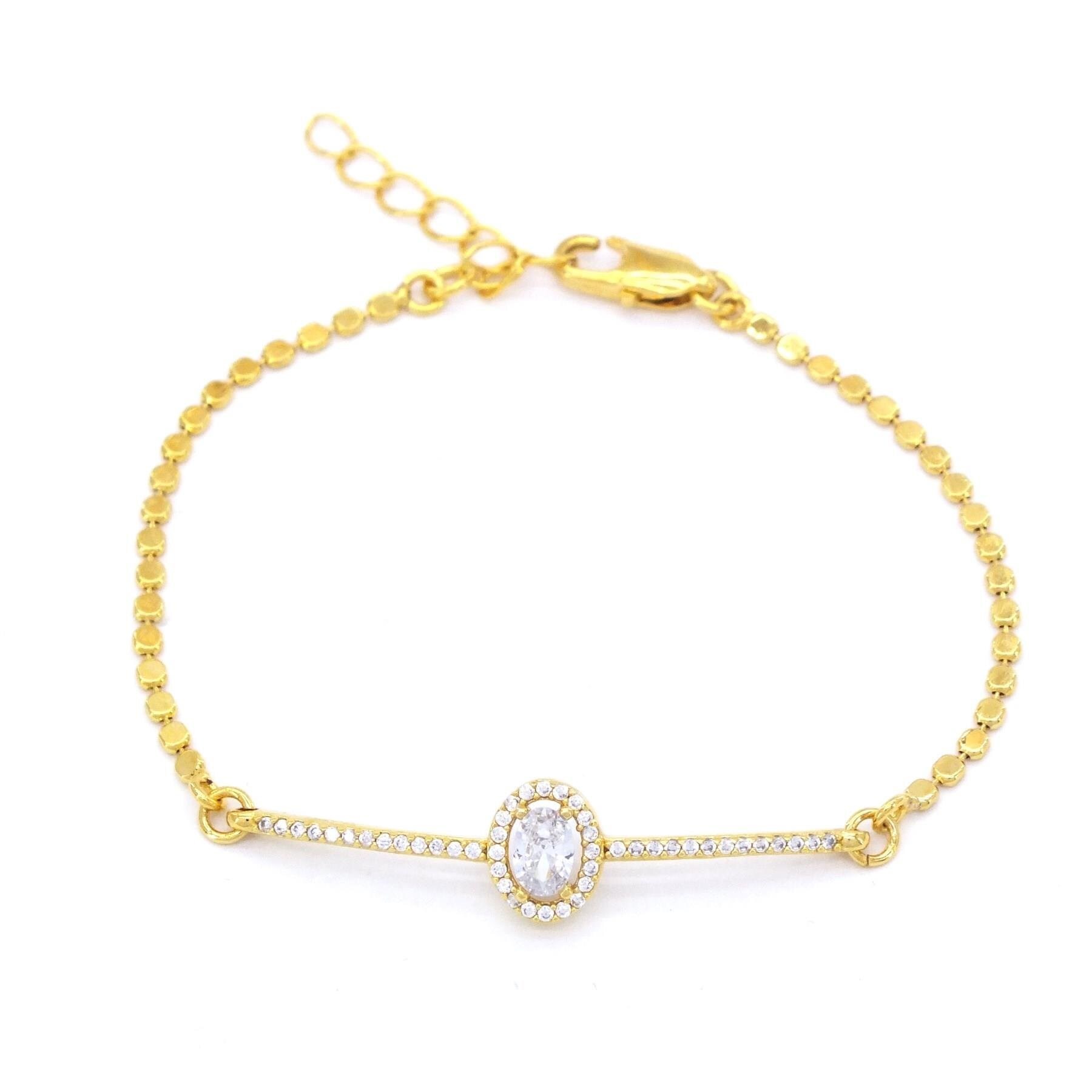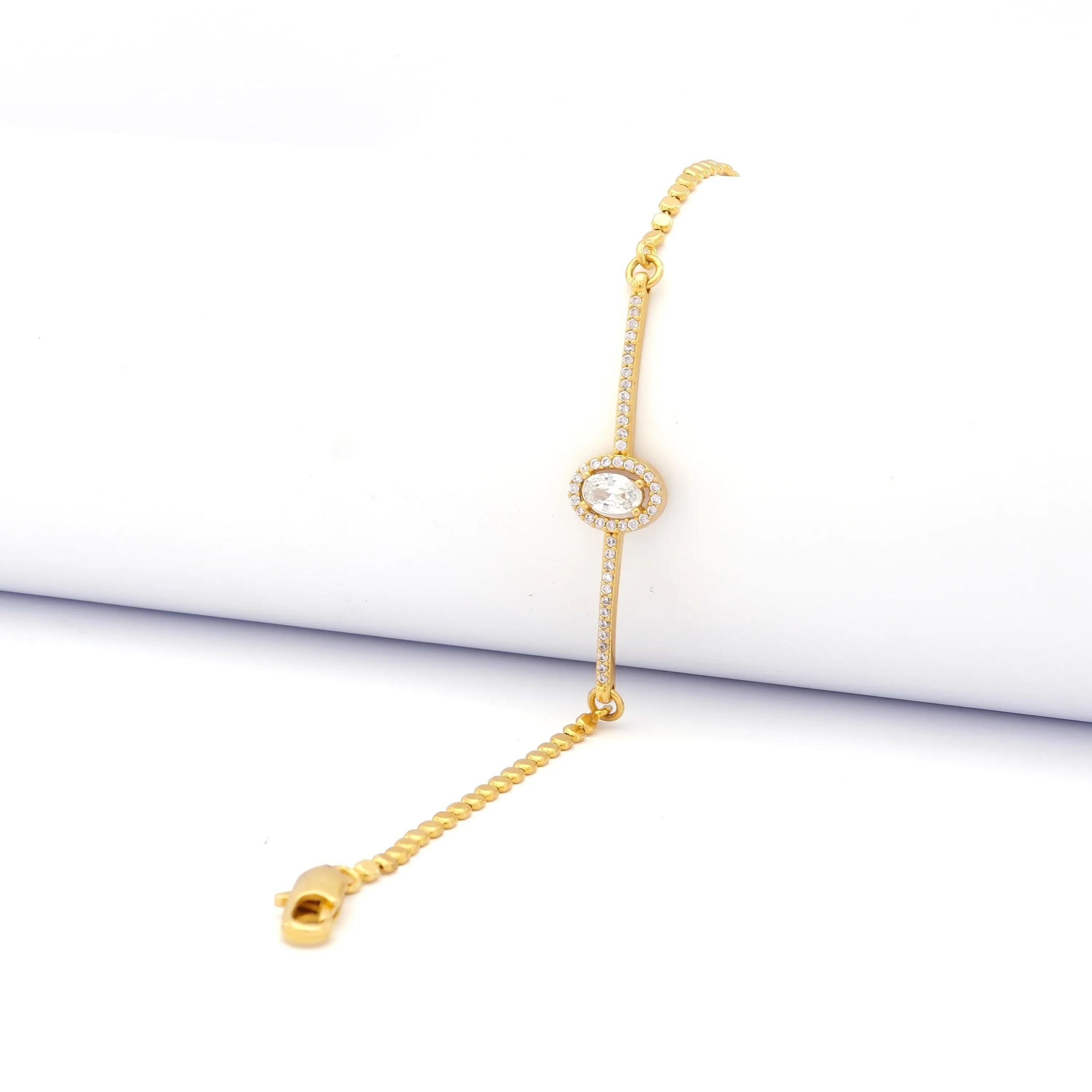 Altın Kaplama Ezme Zincirli Oval Zirkon Taşlı Kadın Bileklik BLK-501