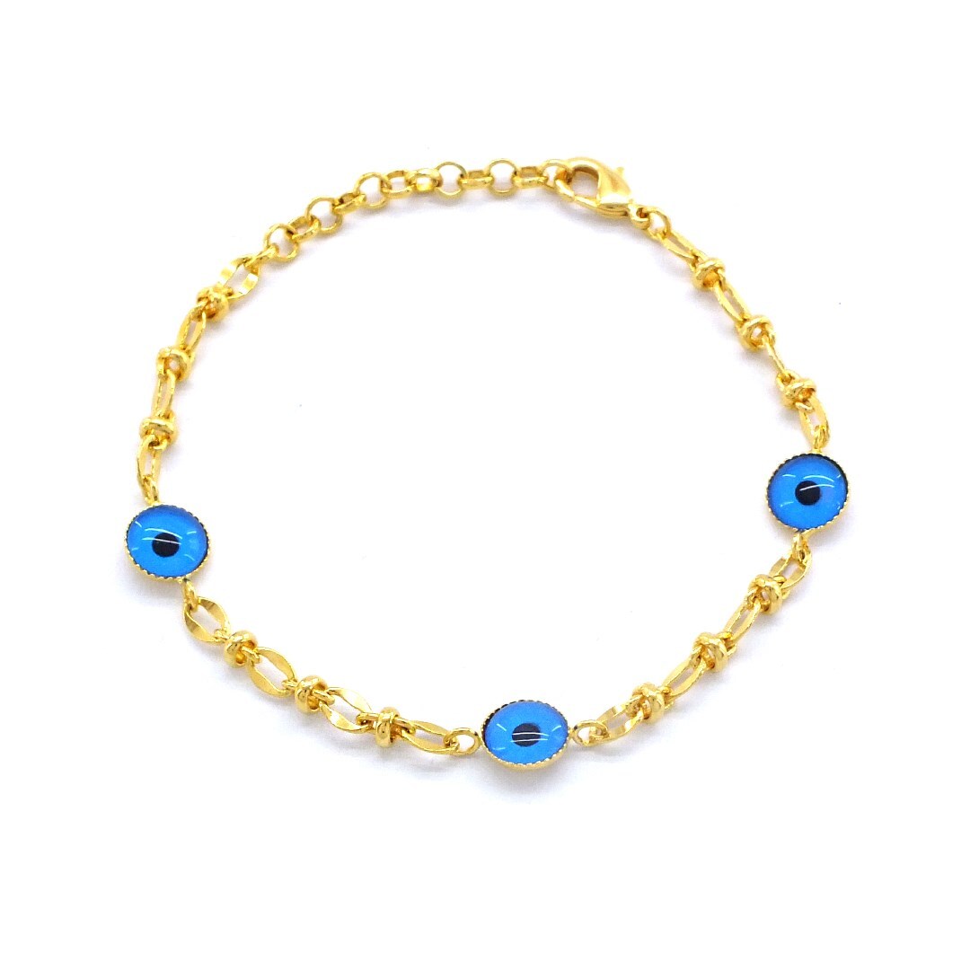 BZ Altın Kaplama Bileklik Nazar Boncuklu Çelik Bileklik BLK-909
