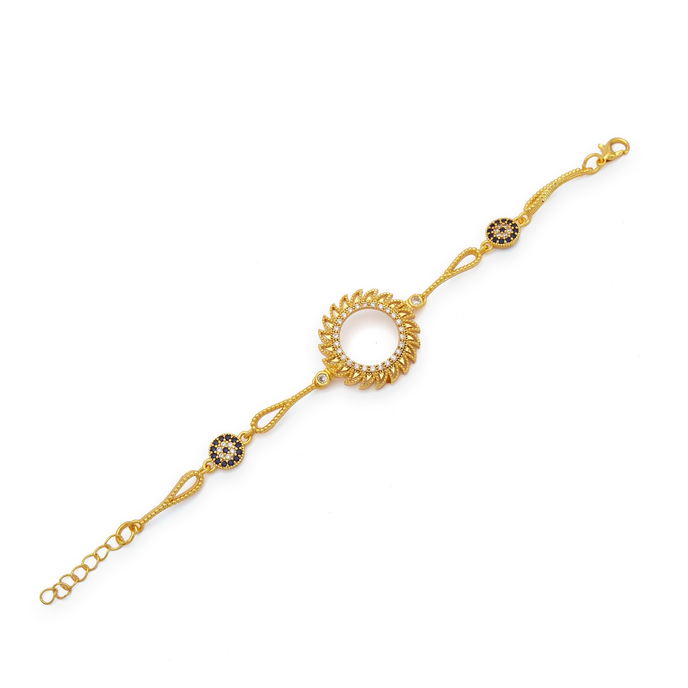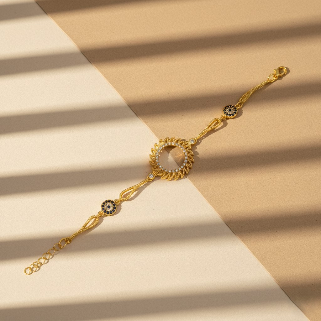 Altın Kaplama İmitasyon Güneş Model Nazar Boncuklu Çeyrek Çerçeveli Bileklik BLK-1218