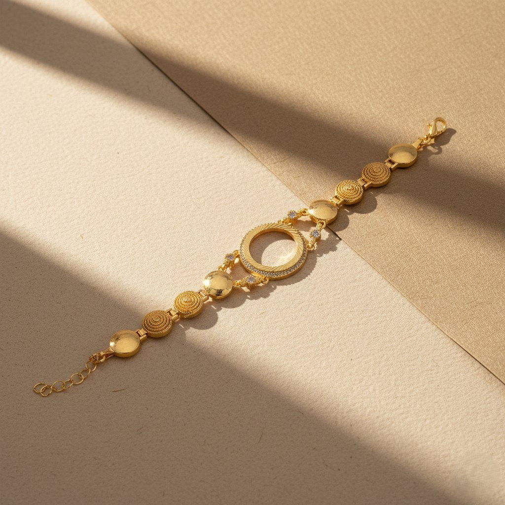 Toptan takı ve kuyumcu vitrinlerinin vazgeçilmezi olan Çerçeve Bileklik modellerimiz, özellikle düğün sezonlarında ve özel günlerde en çok talep gören ürünlerin başında gelir. Altın Kaplama İmitasyon Zirkon Taşlı Çeyrek Çerçeveli Bileklik BLK-1202, içine yerleştirilecek altın (çeyrek/yarım/tam) ile mükemmel uyum sağlayacak şekilde, gerçek altın kalıpları kullanılarak üretilmiştir.
