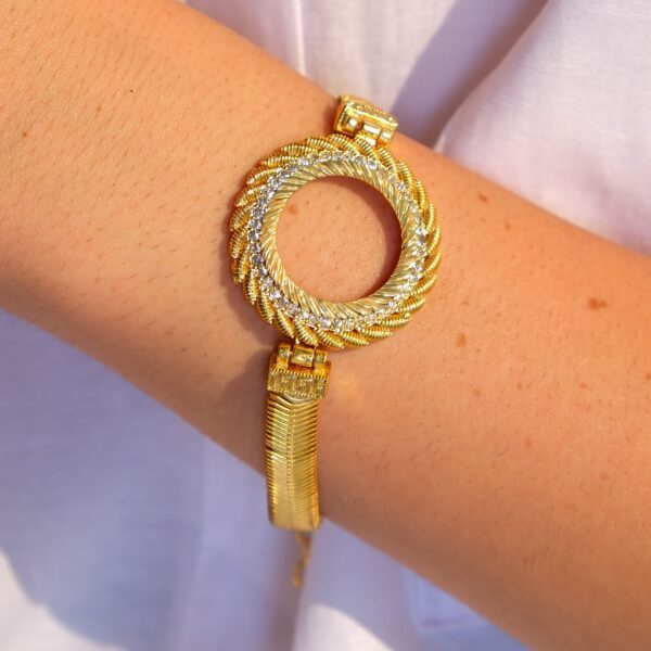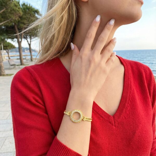 Her bir çerçeve bileklik, kuyumcu ustalığıyla üretilmiştir. Yüksek kaliteli çelik üzerine 2 mikron altın kaplama uygulanarak parlak, pürüzsüz ve uzun ömürlü bir yüzey elde edilir. Gerçek altına yakın görünümü sayesinde hem zarif hem de dikkat çekici bir duruş sunar.