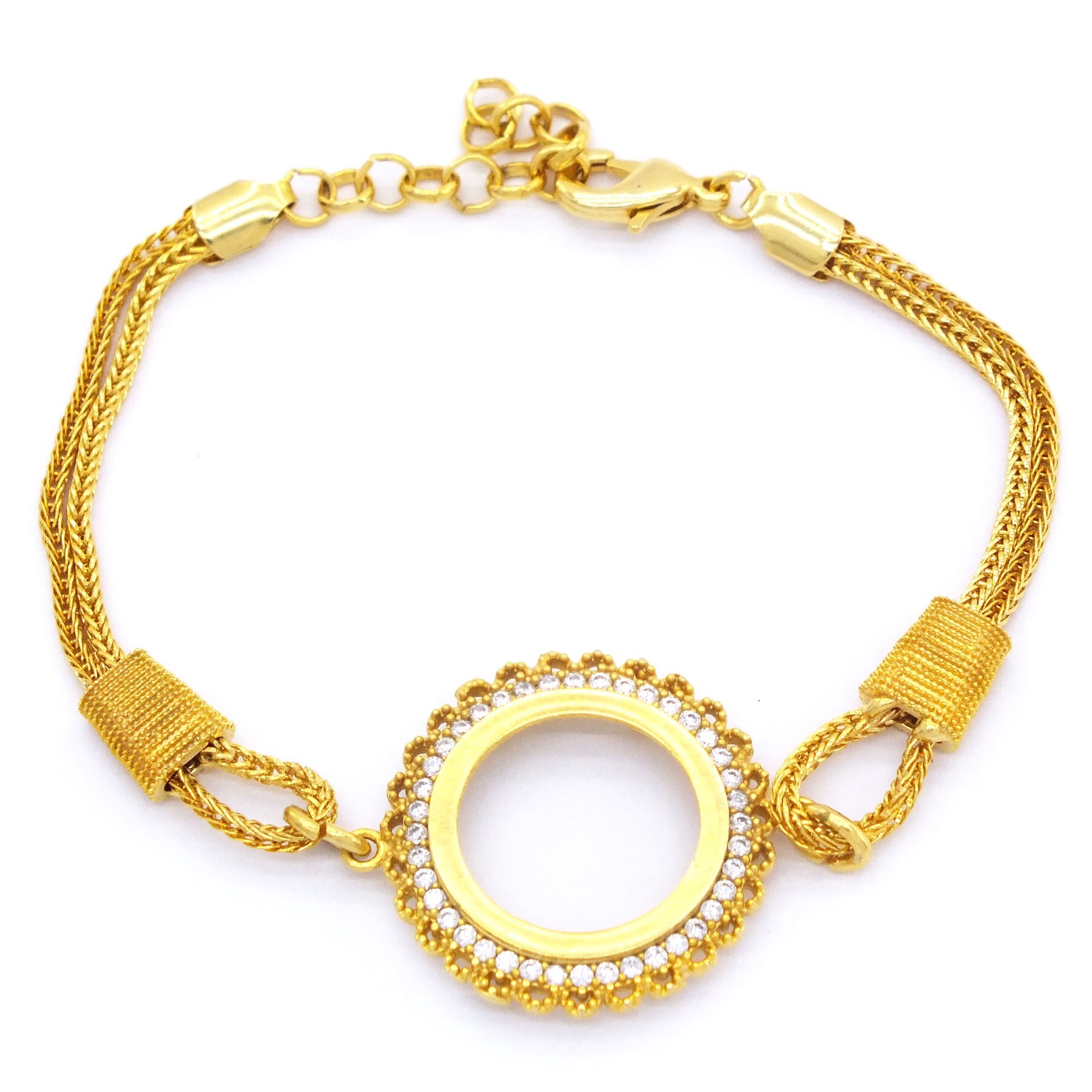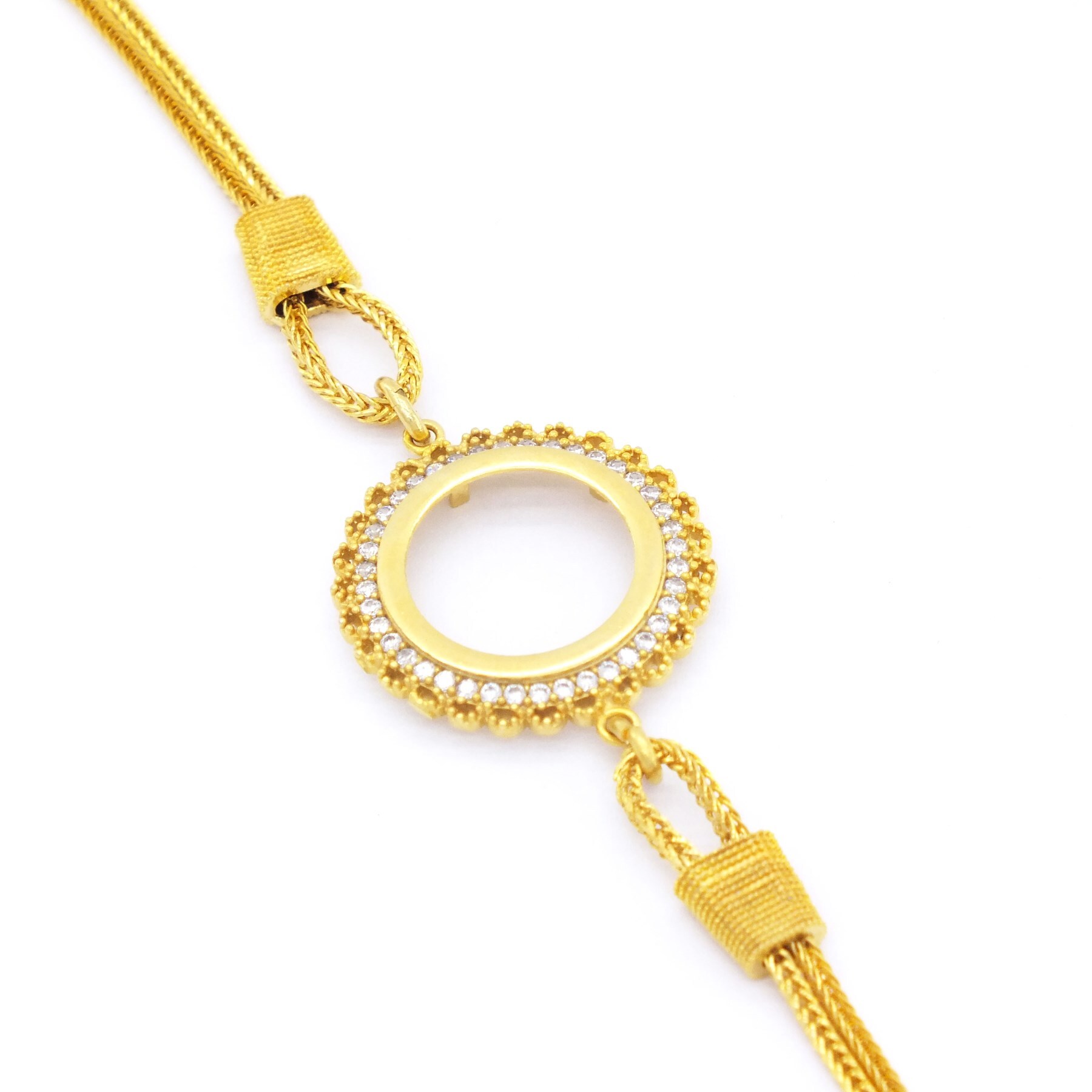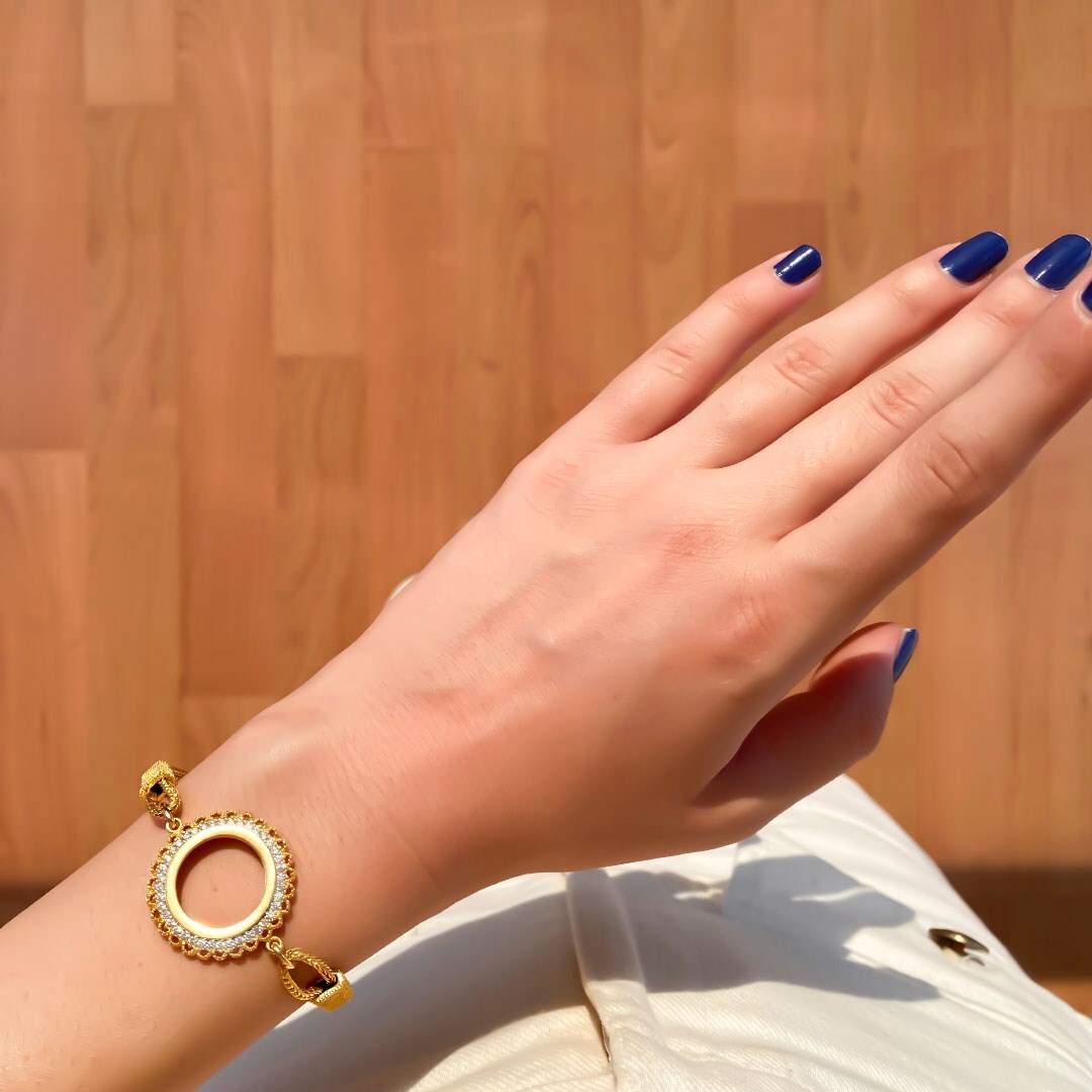 Çeyrek Altın Çerçeve Bileklik Çelik Altın Kaplama Zirkon Taşlı Model BLK-746