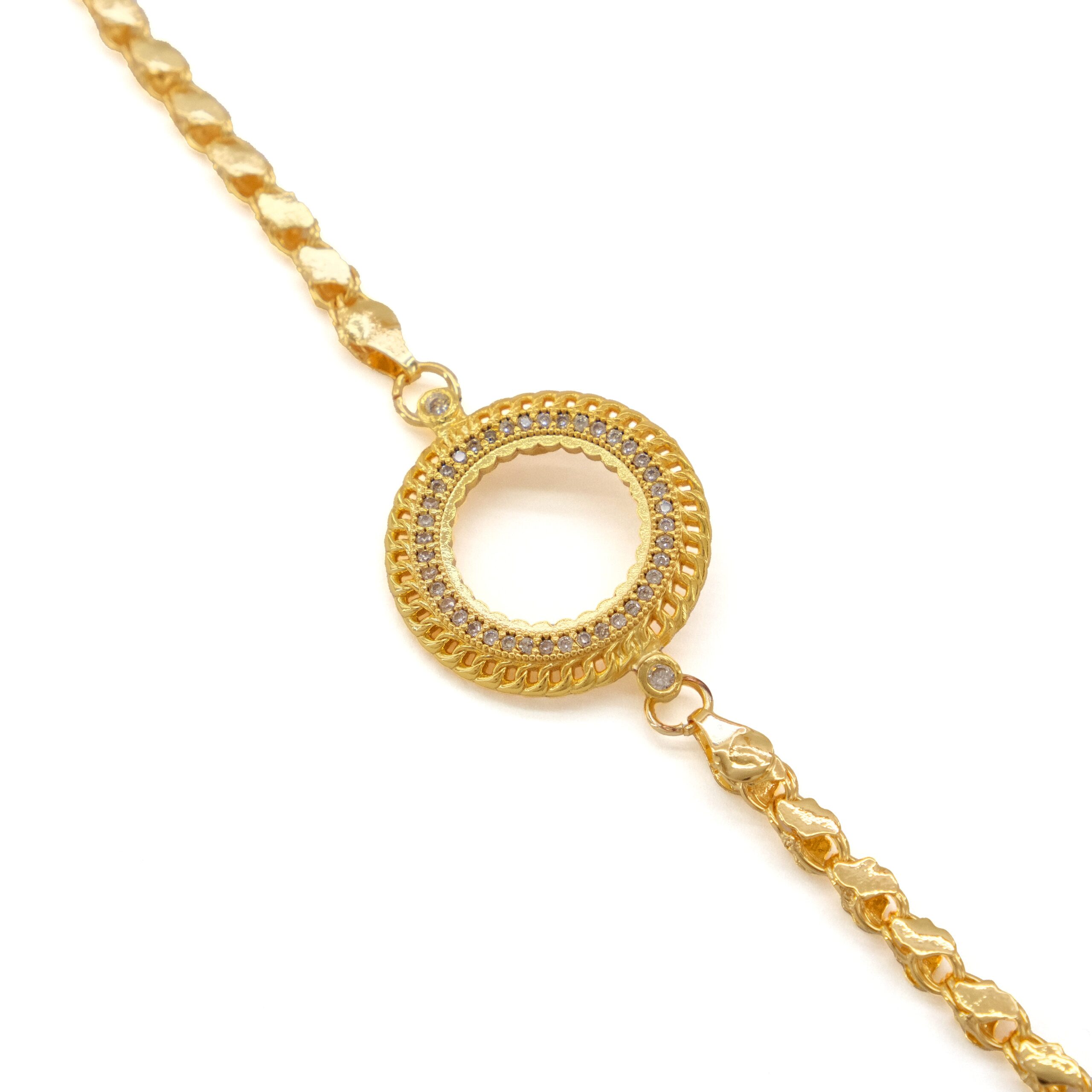Toptan takı ve kuyumcu vitrinlerinin vazgeçilmezi olan Çerçeve Bileklik modellerimiz, özellikle düğün sezonlarında ve özel günlerde en çok talep gören ürünlerin başında gelir. Çeyrek Altın Çerçeve Bileklik Çelik Altın Kaplama Arpa Model BLK-1099, içine yerleştirilecek altın (çeyrek/yarım/tam) ile mükemmel uyum sağlayacak şekilde, gerçek altın kalıpları kullanılarak üretilmiştir.