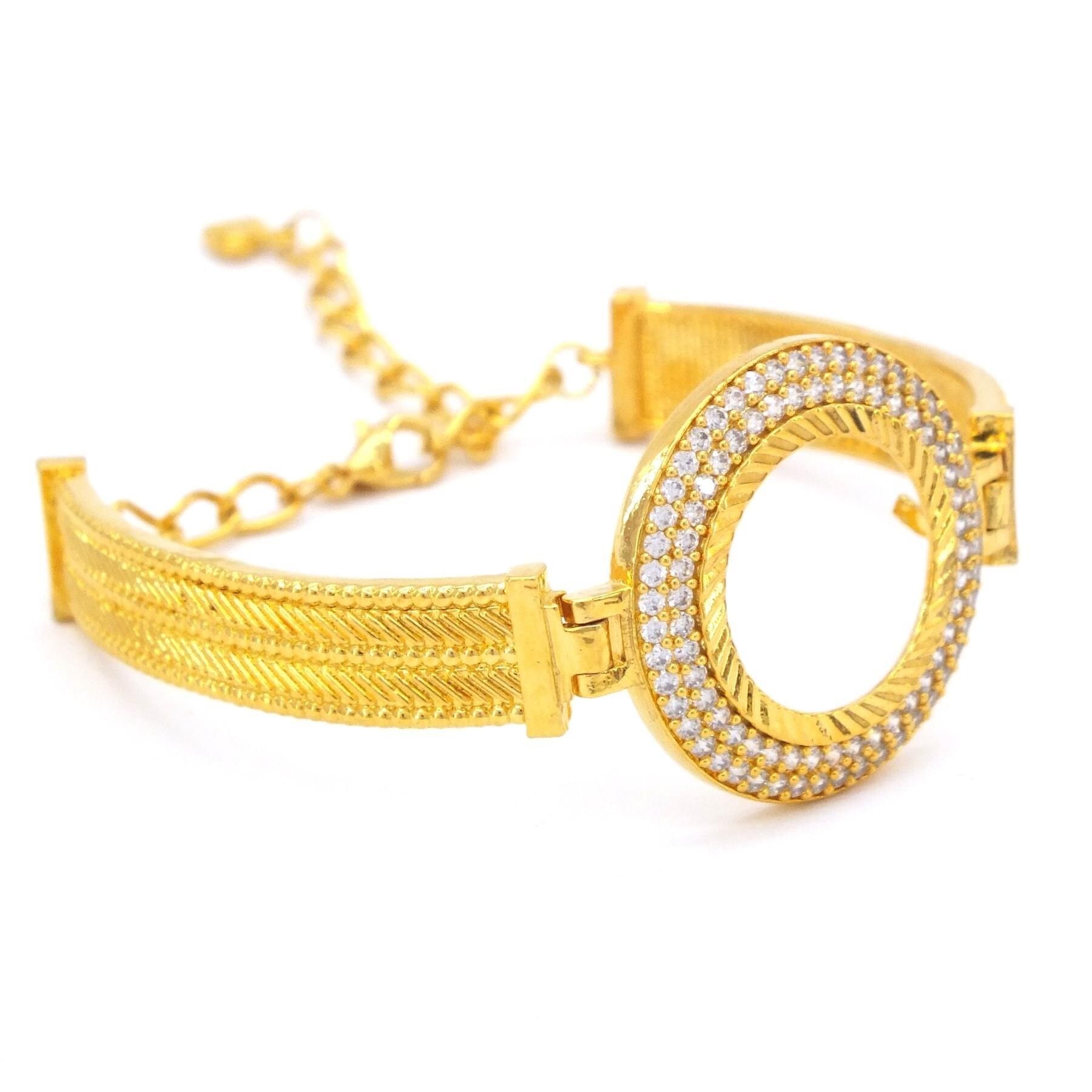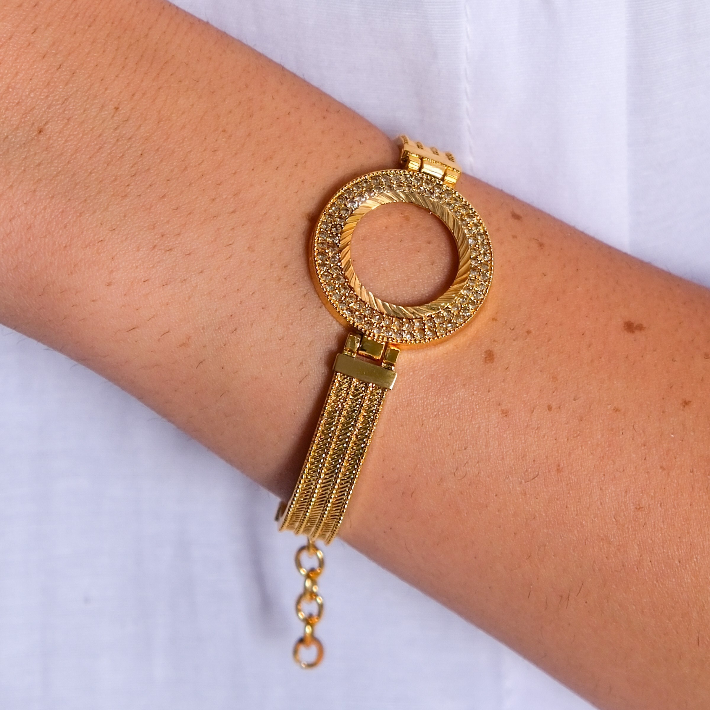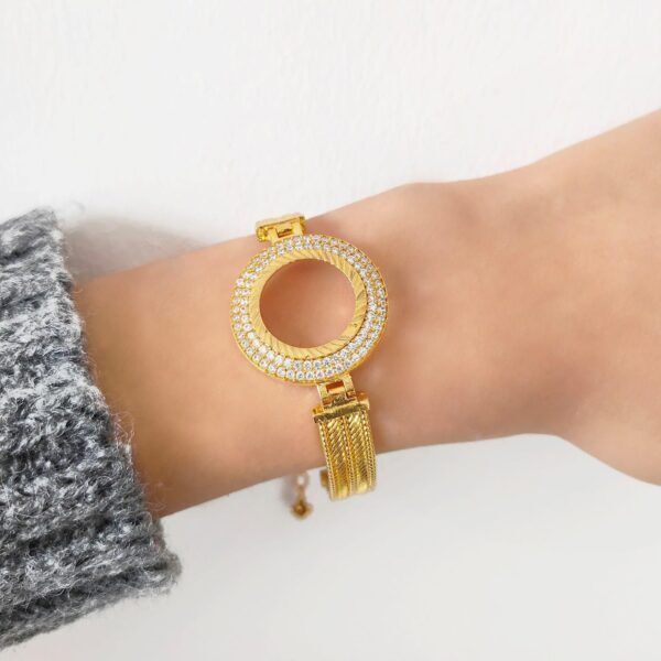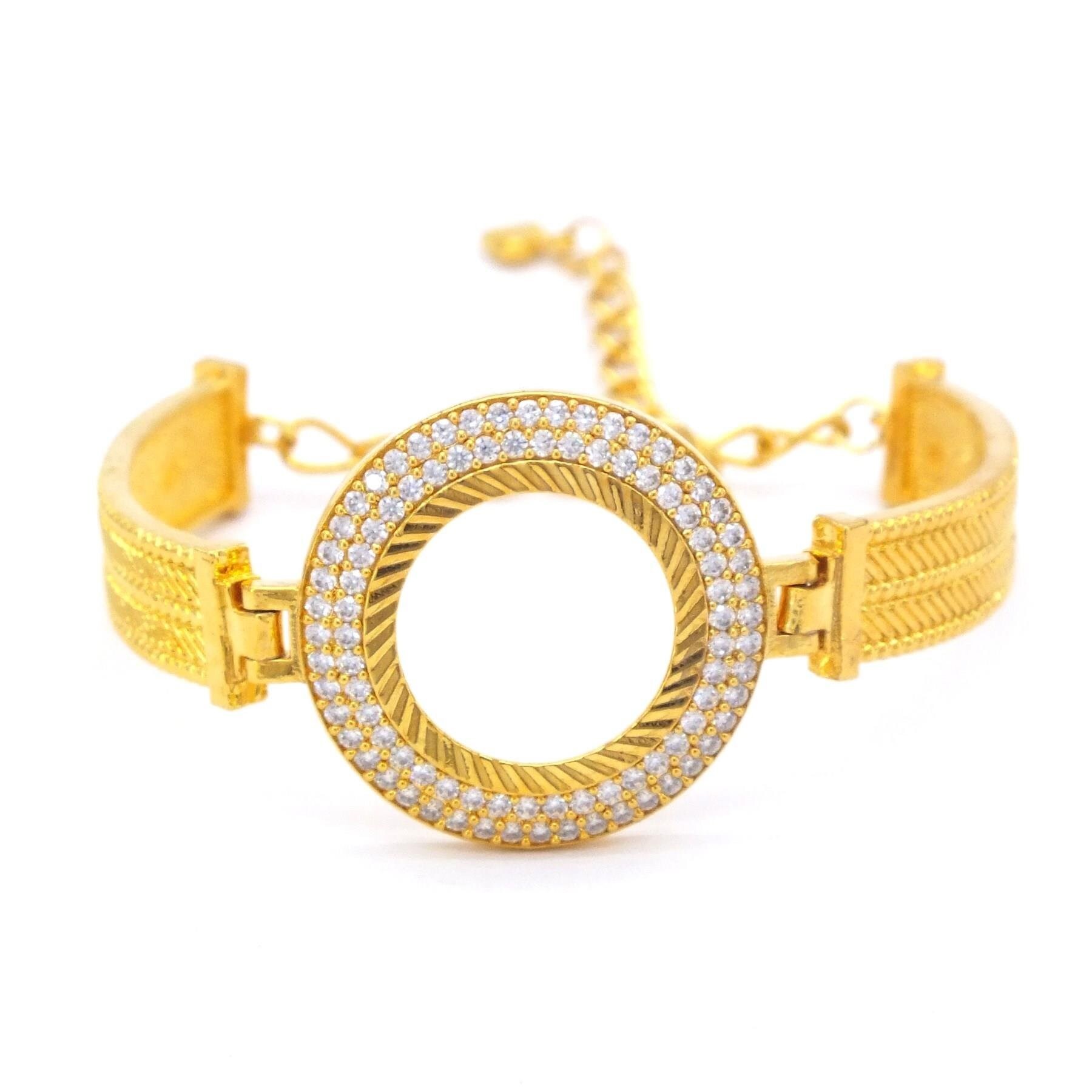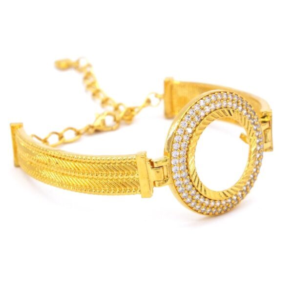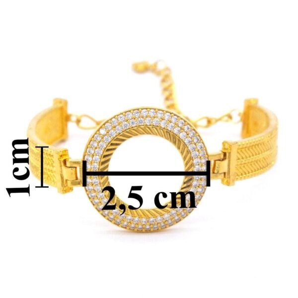 Çeyrekli Çerçeve Bileklik Altın Kaplama İki Sıra Zirkon Taşlı Kelepçe BLZ-260