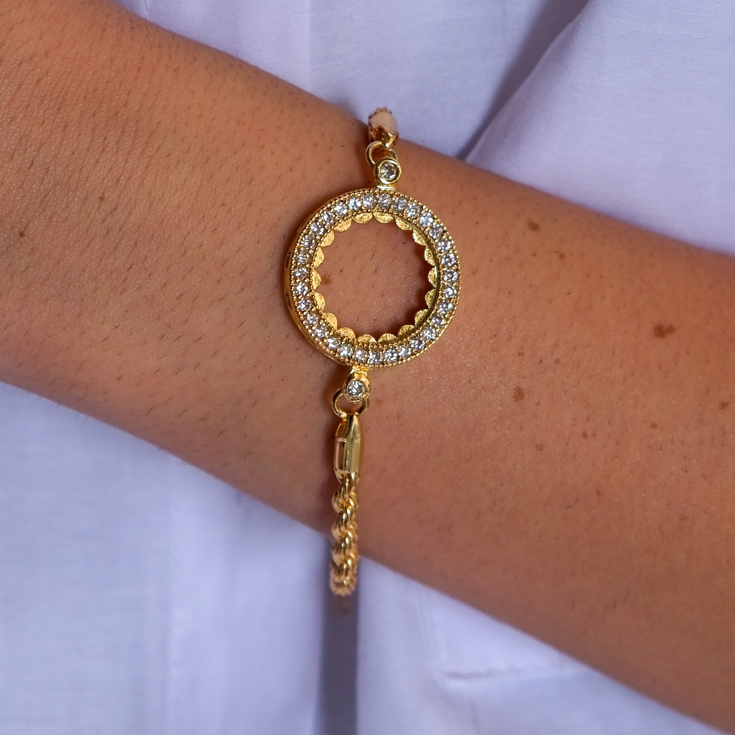 Toptan takı ve kuyumcu vitrinlerinin vazgeçilmezi olan Çerçeve Bileklik modellerimiz, özellikle düğün sezonlarında ve özel günlerde en çok talep gören ürünlerin başında gelir. Yarım Altın Çerçeve Bileklik Çelik Altın Kaplama Burgu Model BLK-1074, içine yerleştirilecek altın (çeyrek/yarım/tam) ile mükemmel uyum sağlayacak şekilde, gerçek altın kalıpları kullanılarak üretilmiştir.