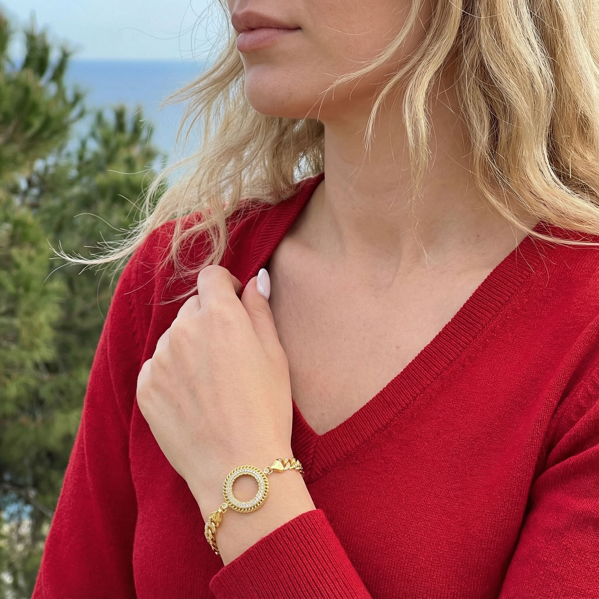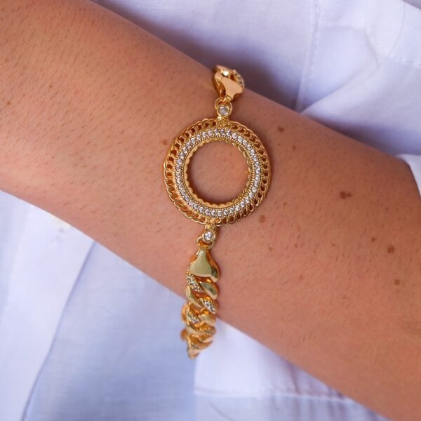- Tasarım: Figaro zincir modeli ve çeyrek altın çerçeveli bileklik