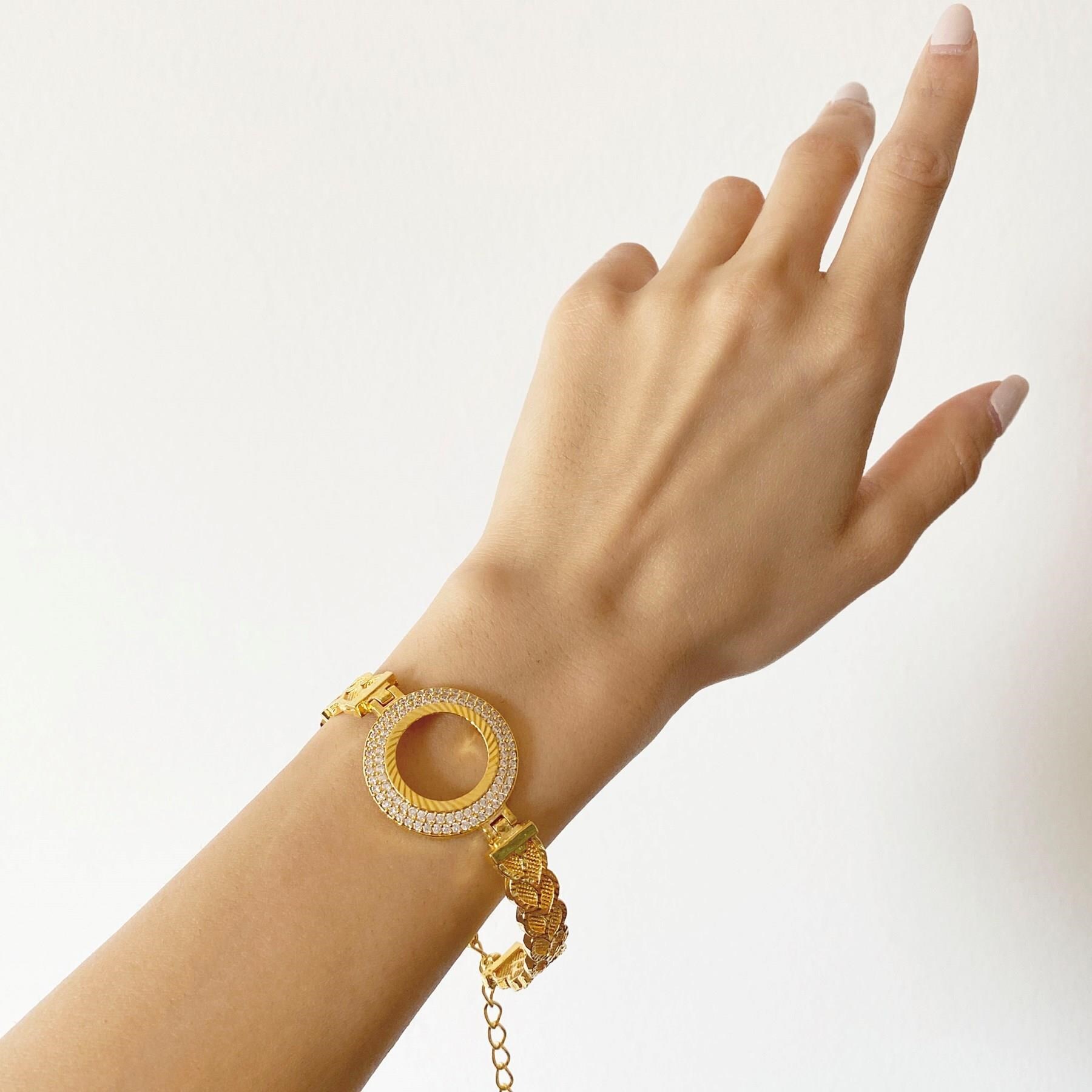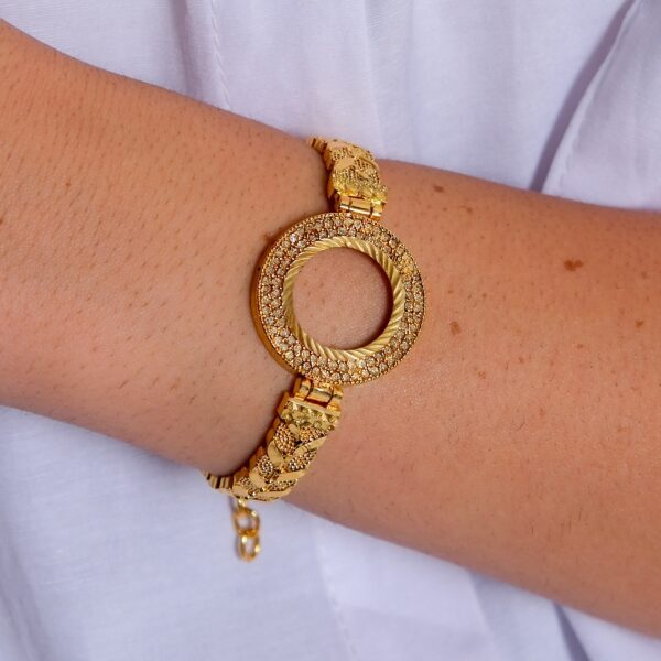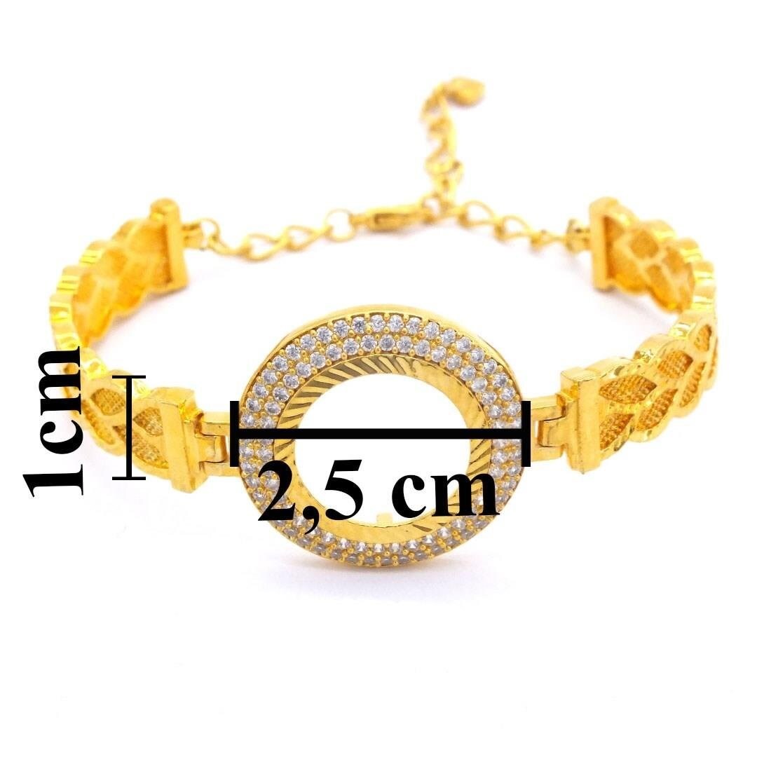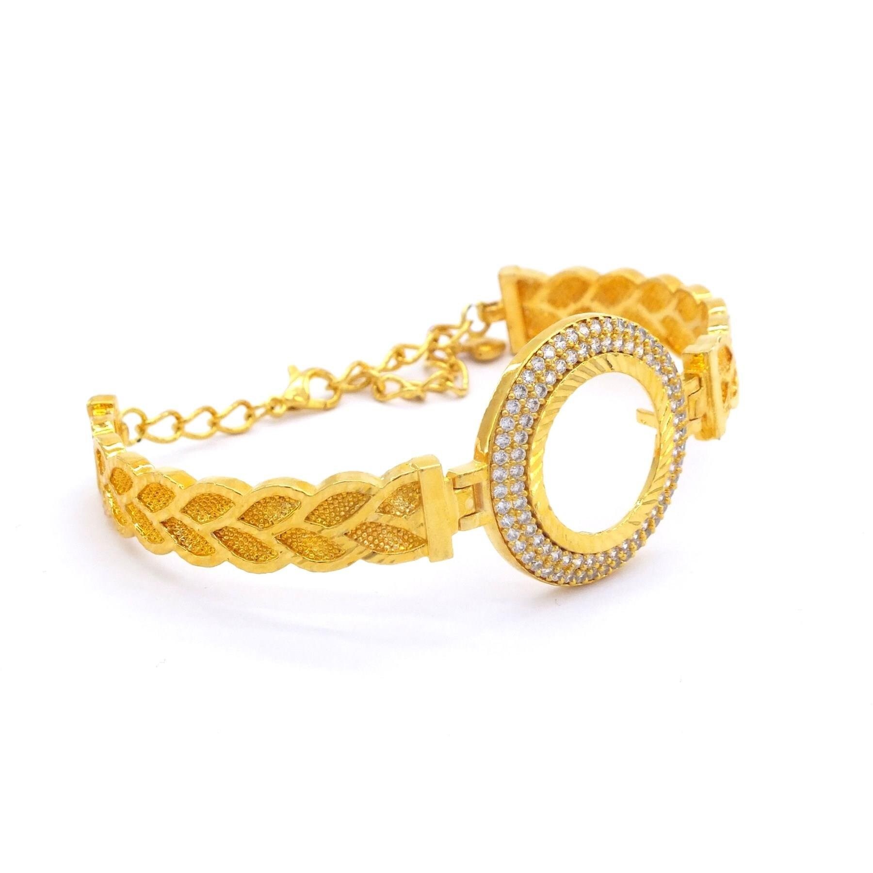 Yarımlı Çerçeve Bileklik Altın Kaplama Taşlı Lazerli Kelepçe BLZ-294