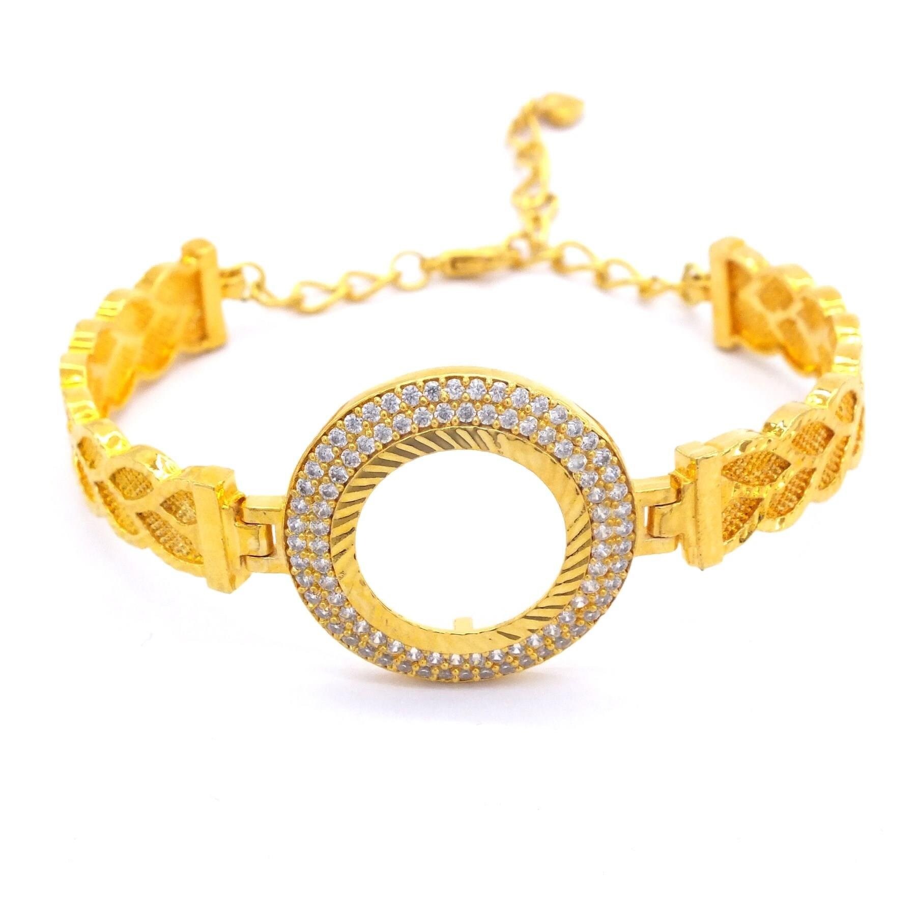 Toptan takı ve kuyumcu vitrinlerinin vazgeçilmezi olan Çerçeve Bileklik modellerimiz, özellikle düğün sezonlarında ve özel günlerde en çok talep gören ürünlerin başında gelir. Yarımlı Çerçeve Bileklik Altın Kaplama Taşlı Lazerli Kelepçe BLZ-294, içine yerleştirilecek altın (çeyrek/yarım/tam) ile mükemmel uyum sağlayacak şekilde, gerçek altın kalıpları kullanılarak üretilmiştir.