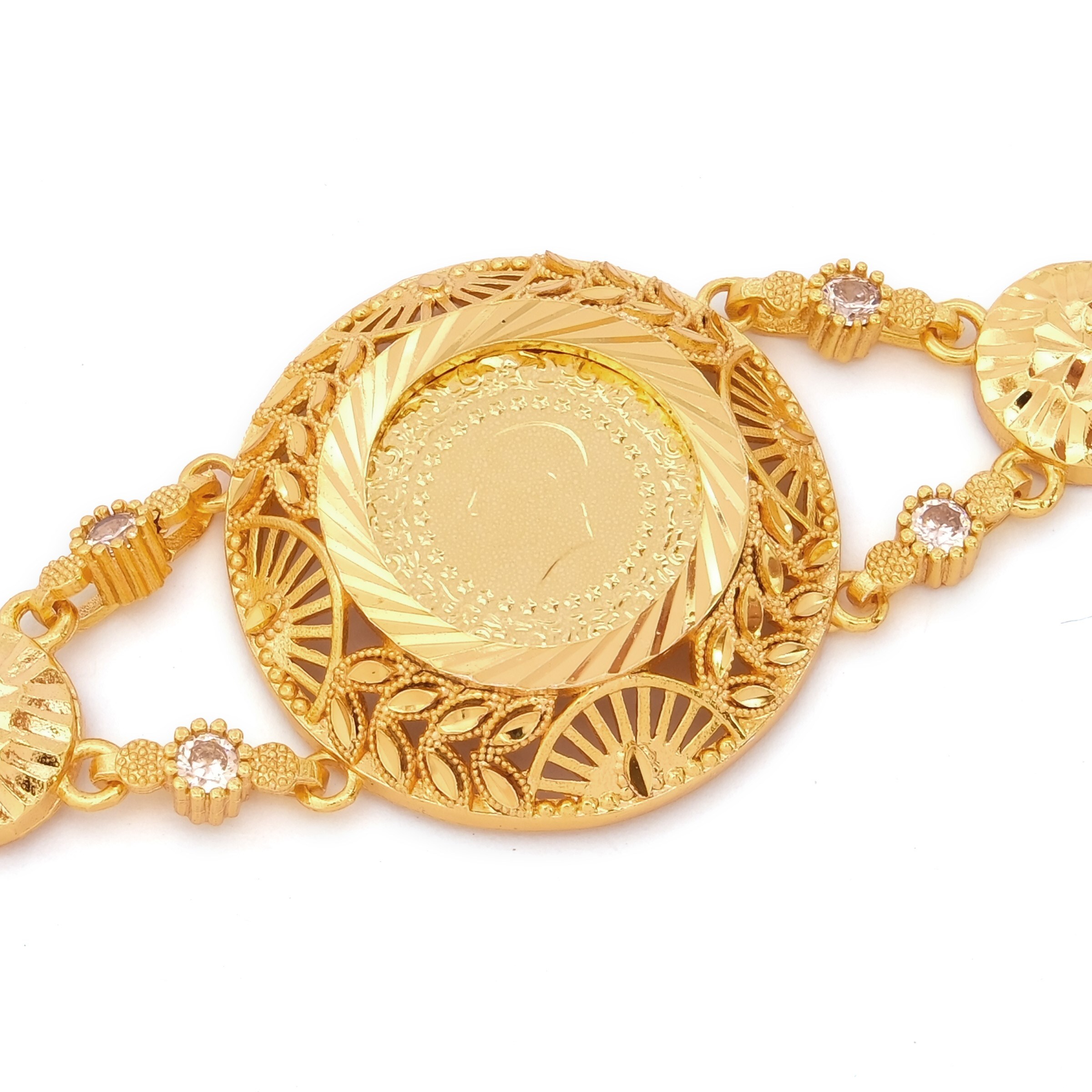 Altın Kaplama İmitasyon Çiçek Desenli Çeyrekli Bileklik BLK-1194
