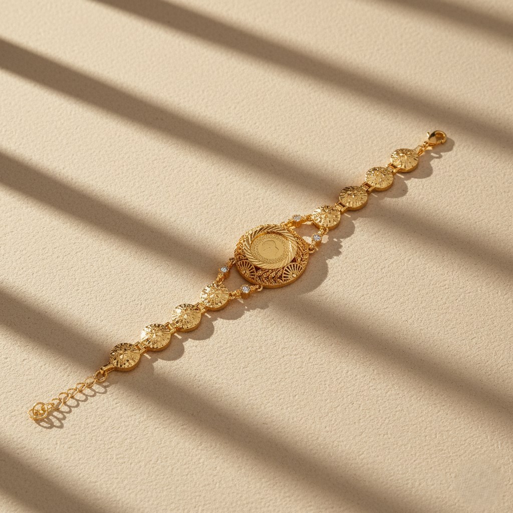 Altın kaplama çeyrekli bileklikler, düğün, nişan ve özel günlerde tercih edilen klasik takı modellerindendir. Gerçek altın görünümü sayesinde hediyelik veya günlük kullanım için idealdir.
