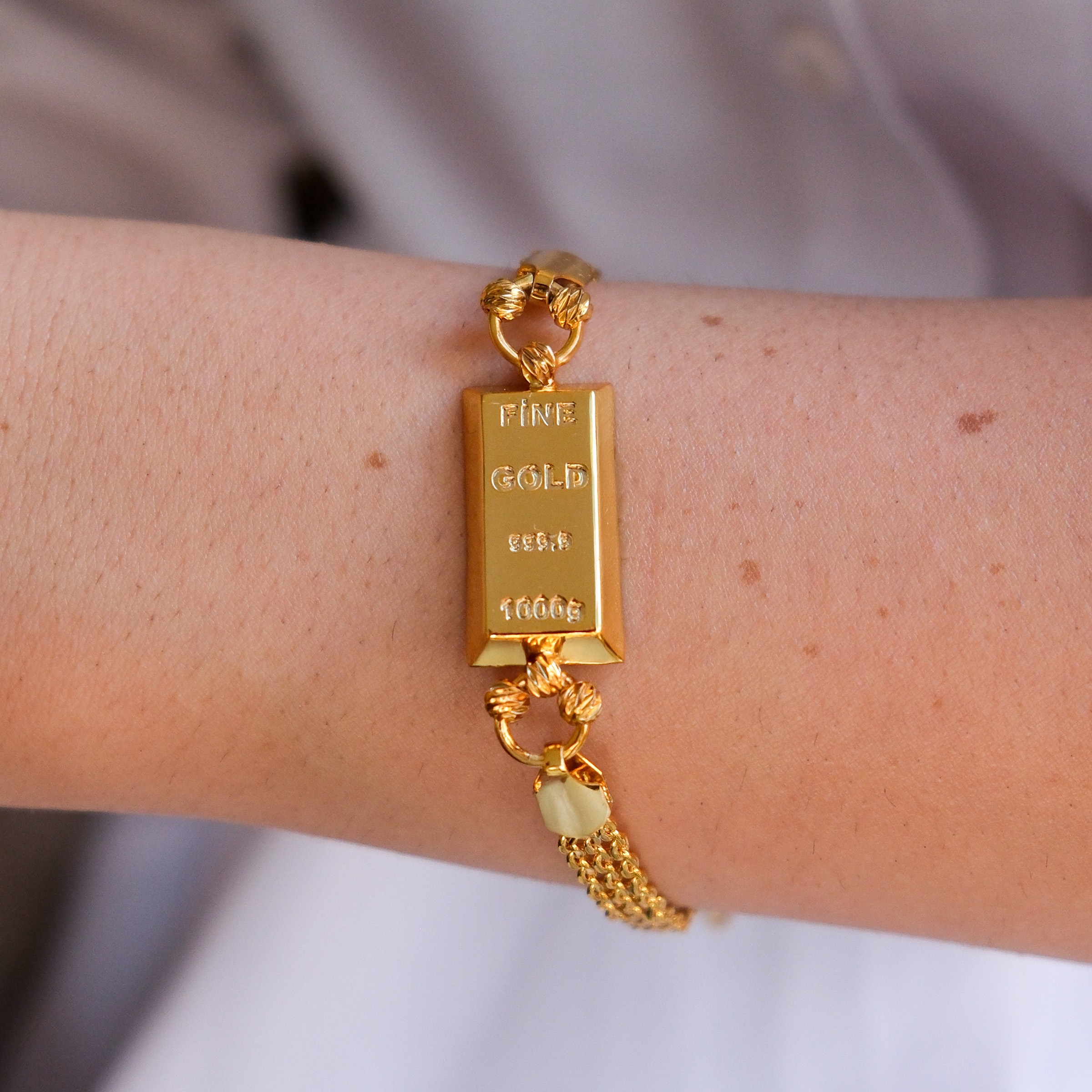 İmitasyon Altın Kaplama Hazır Zincir Desenli Külçe Bileklik BLK-1152