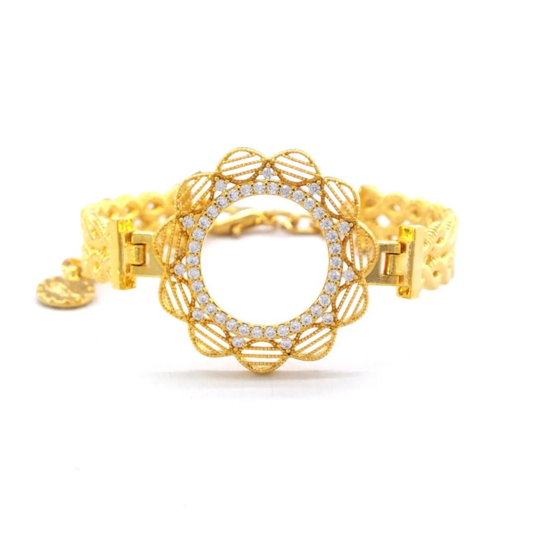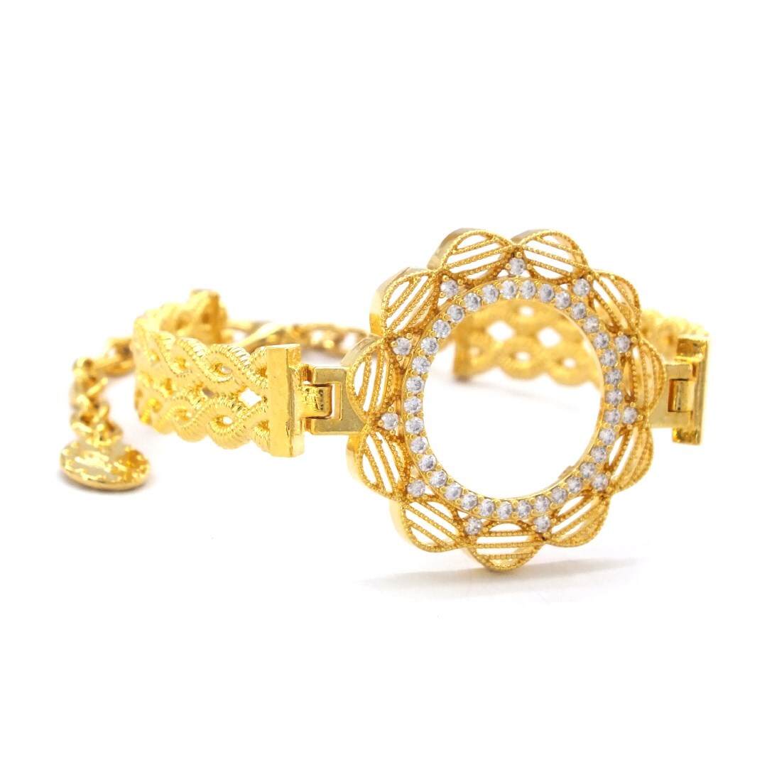 BZ Altın Kaplama Kelepçe Örgü Kollu Çeyrek Çerçeve Bilezik BLZ-499