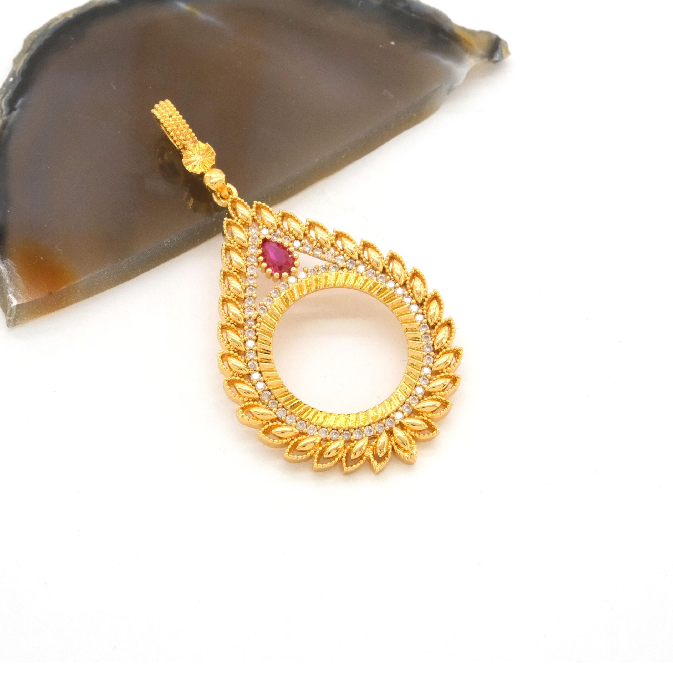 Çeyrek Altın Çerçeveli Kolye Ucu Altın Kaplama TGR-645