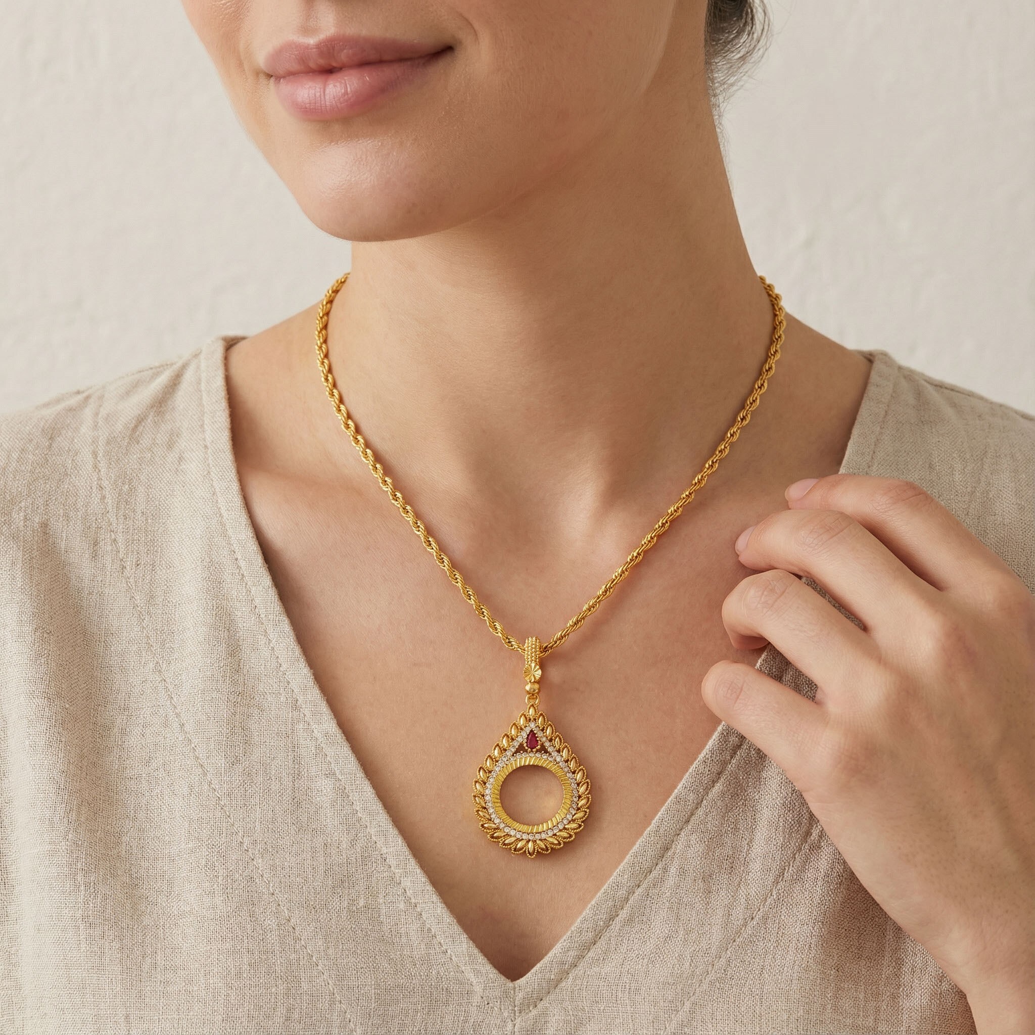 Çeyrek Altın Çerçeveli Kolye Ucu TGR-645, farklı kombinlere kolayca uyum sağlar: