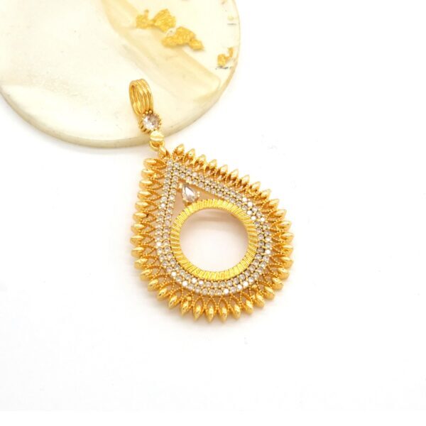 Çeyrek Altın Çerçeveli Kolye Ucu Altın Kaplama TGR-696, detaylı işçiliği ve zarif tasarımıyla FerizZ koleksiyonunun en göz alıcı parçalarından biridir. Şık dantel motifleri, damla formundaki çerçevesi ve parlak taş süslemeleriyle hem klasik hem de modern tarzlara hitap eder. 2 mikron kalınlığındaki altın kaplama yüzeyi, uzun ömürlü kullanım ve dayanıklılık sağlar.