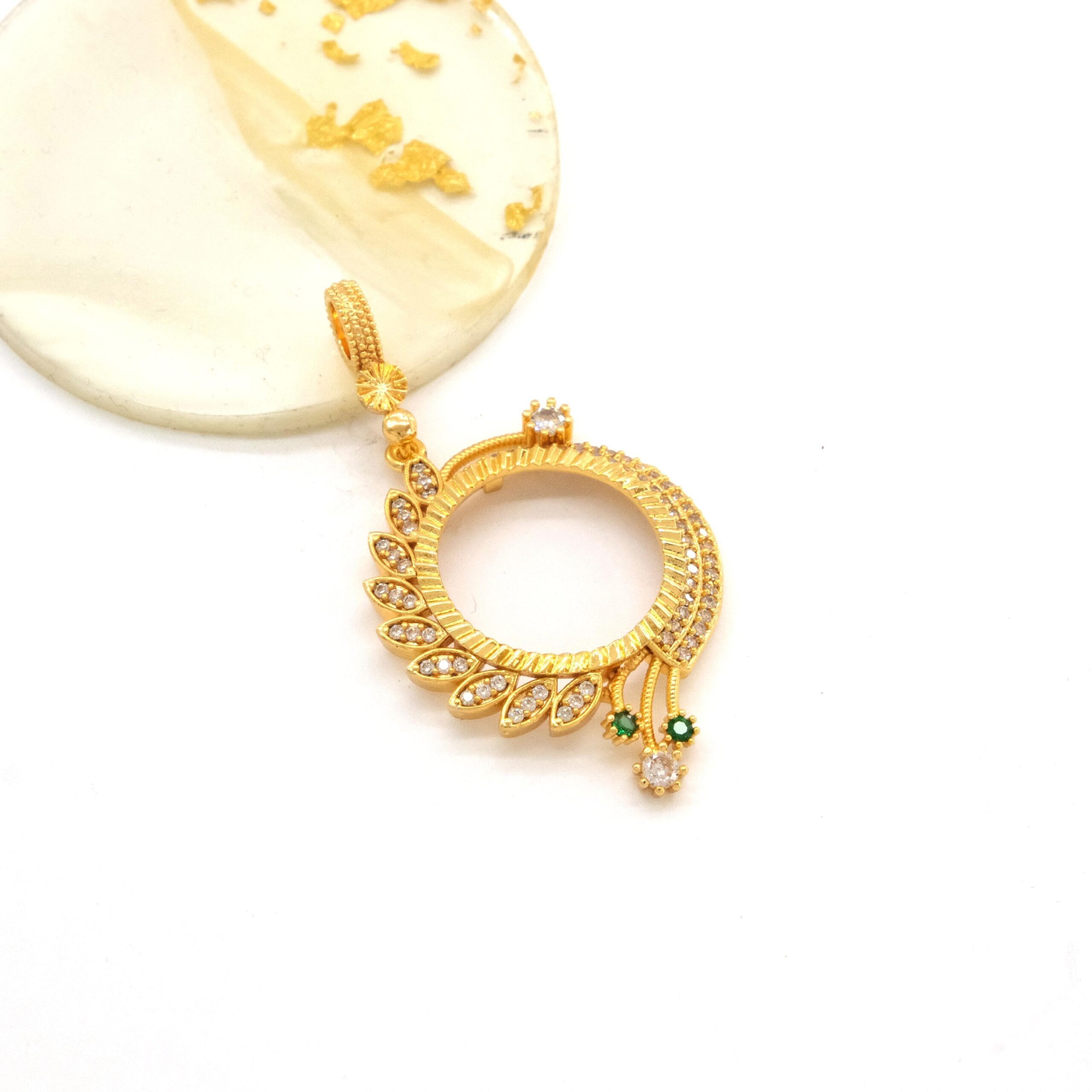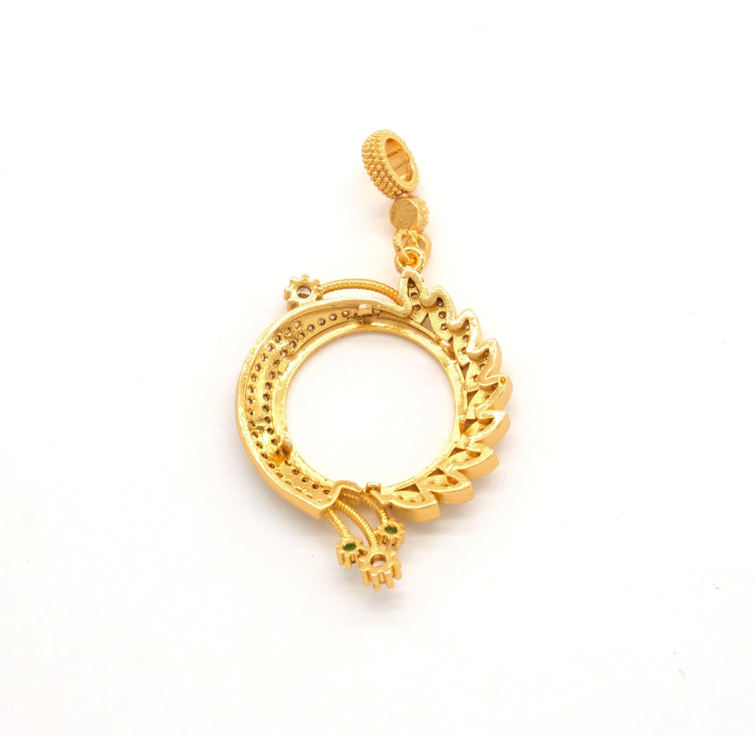 Yarım Altın Çerçeveli Kolye Ucu Altın Kaplama Yuvarlak TGR-630