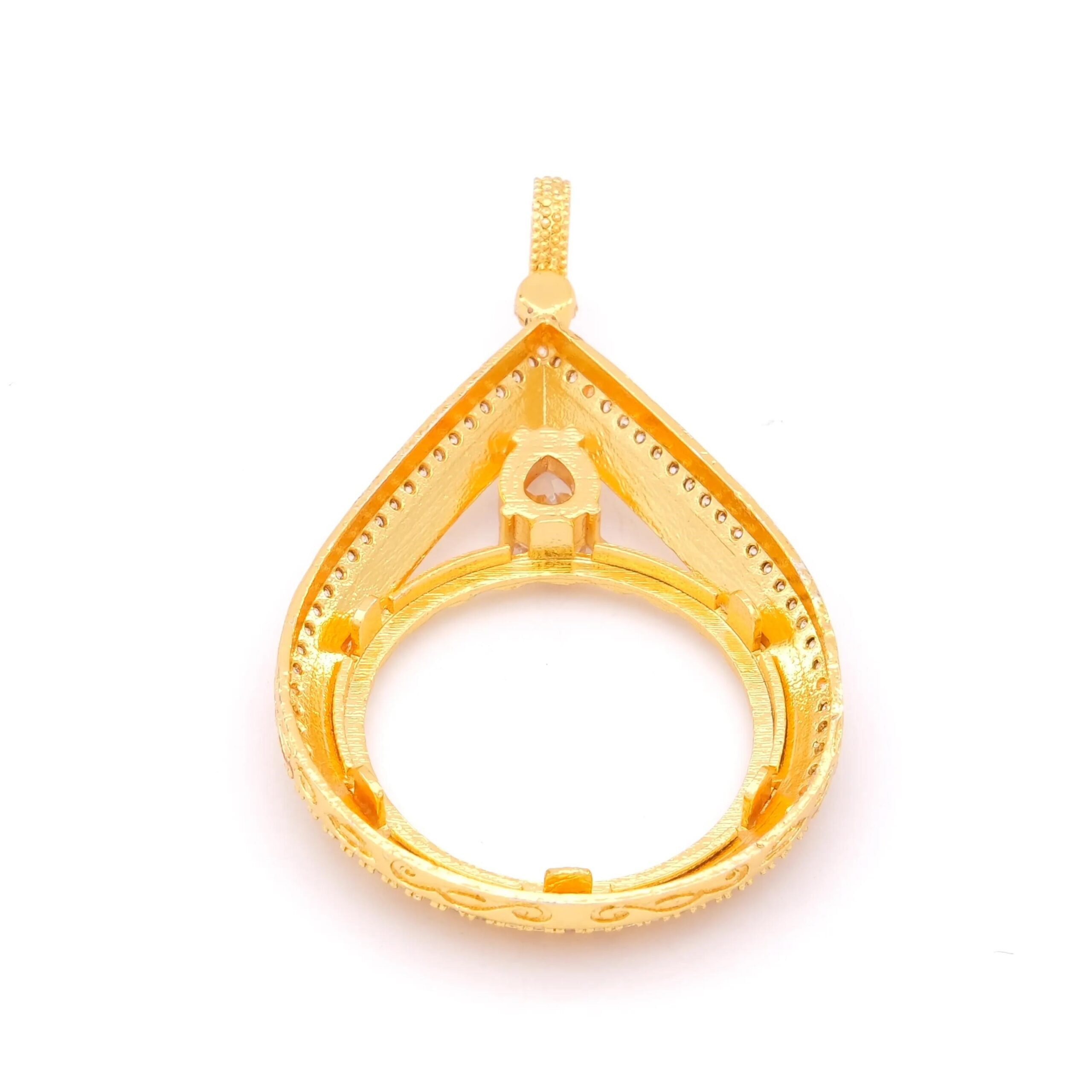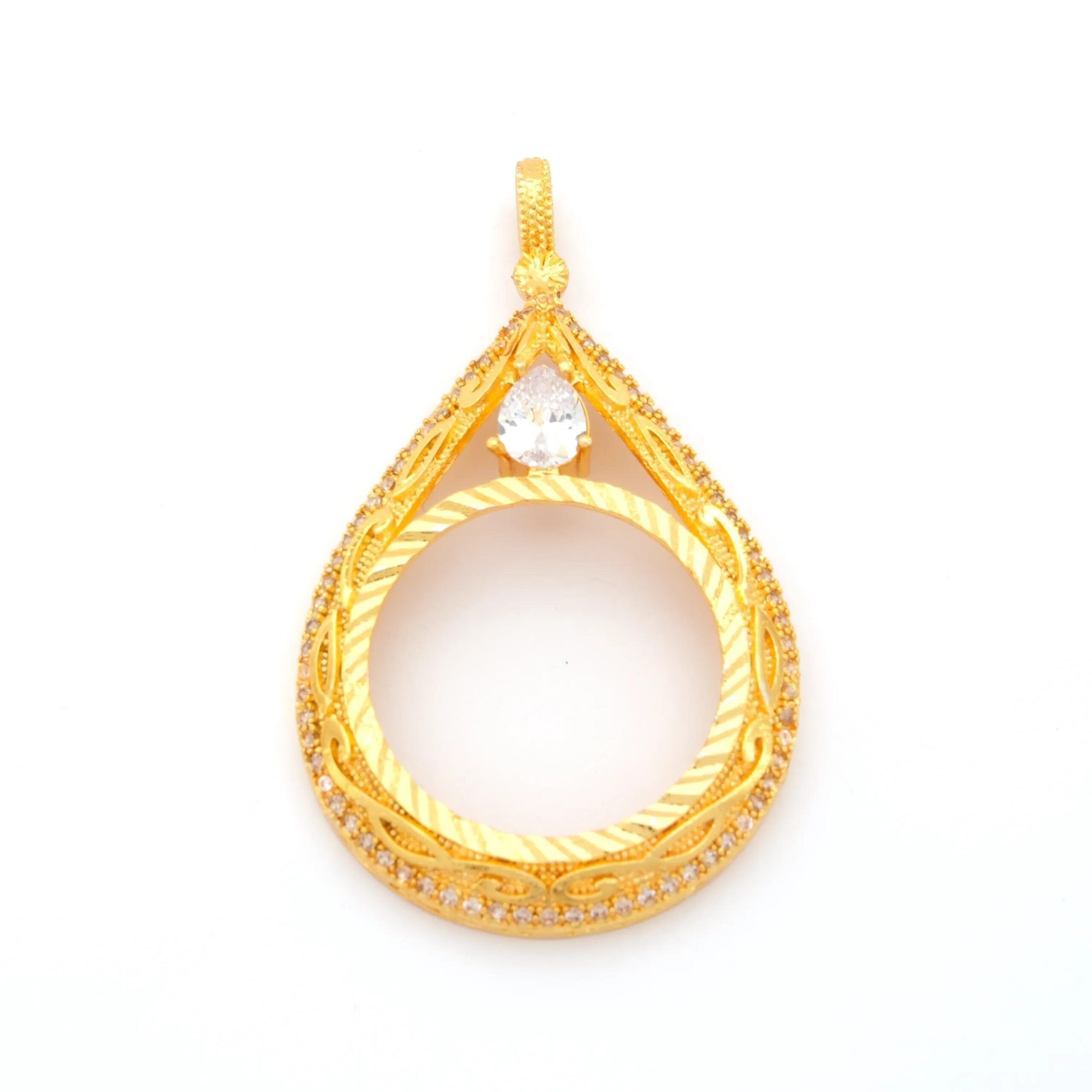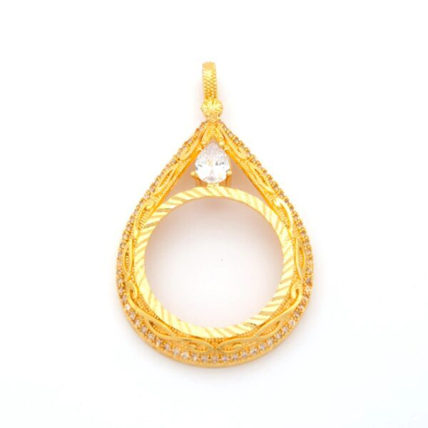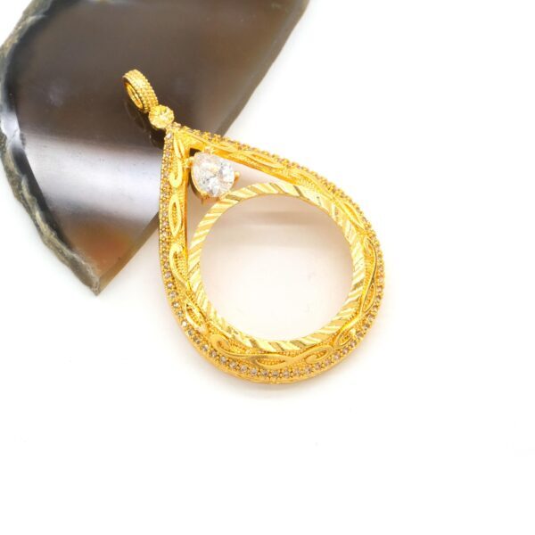 Tam Altın Çerçeveli Kolye Ucu Altın Kaplama İşlemeli TGR-592