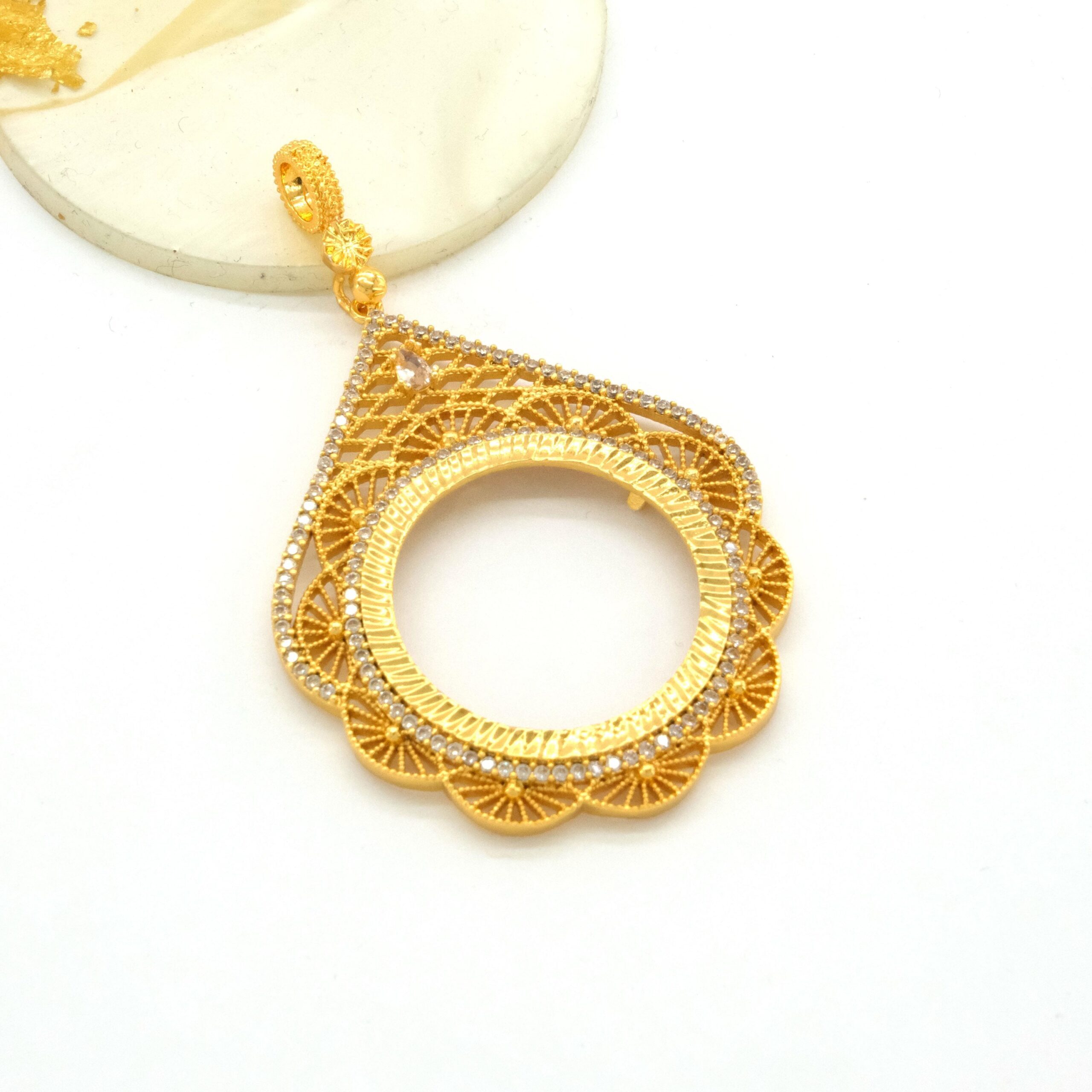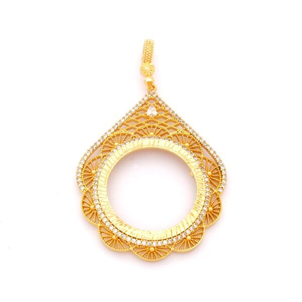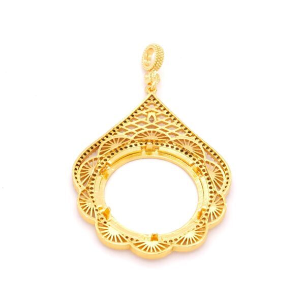 Tam Altın Çerçeveli Kolye Ucu Altın Kaplama İşlemeli TGR-598