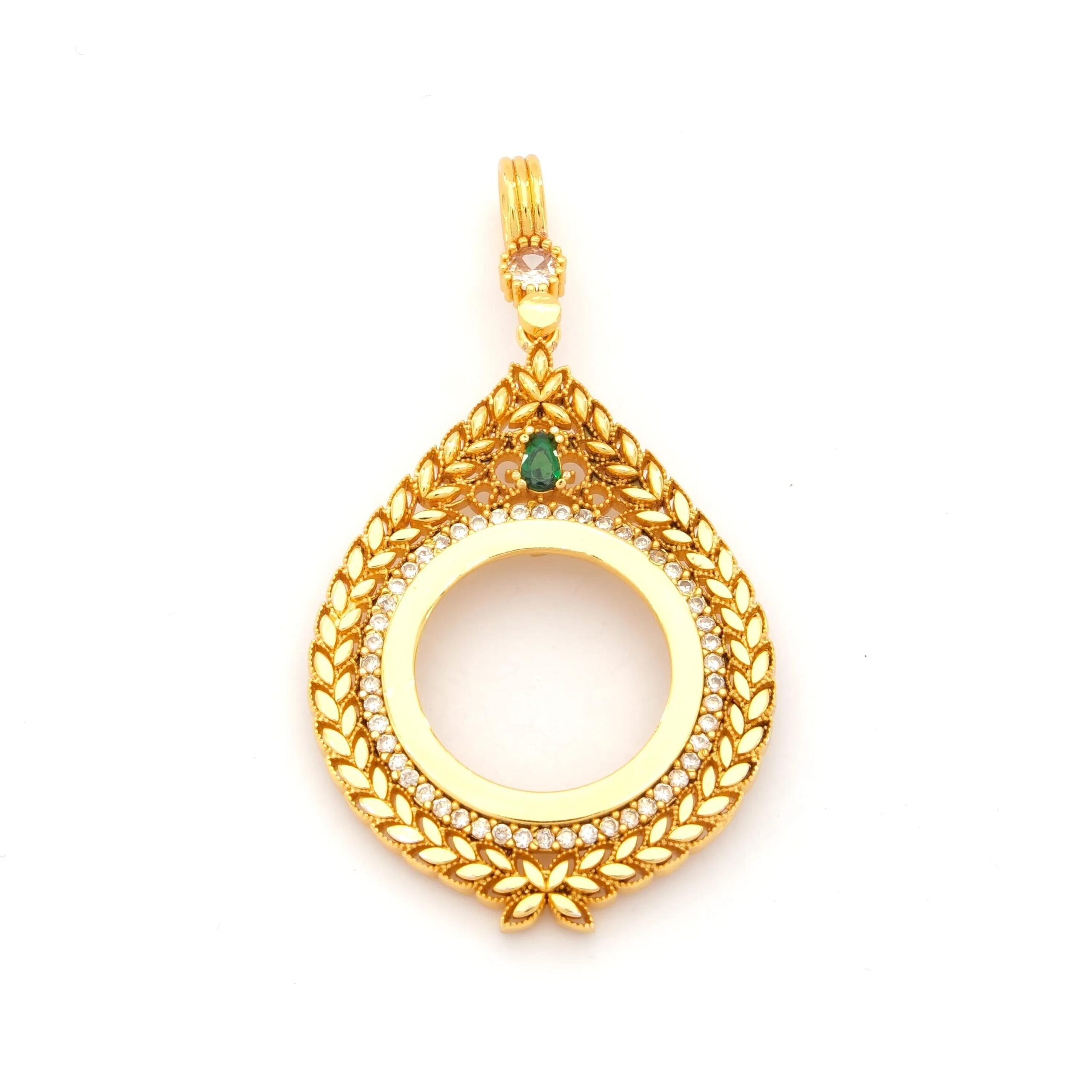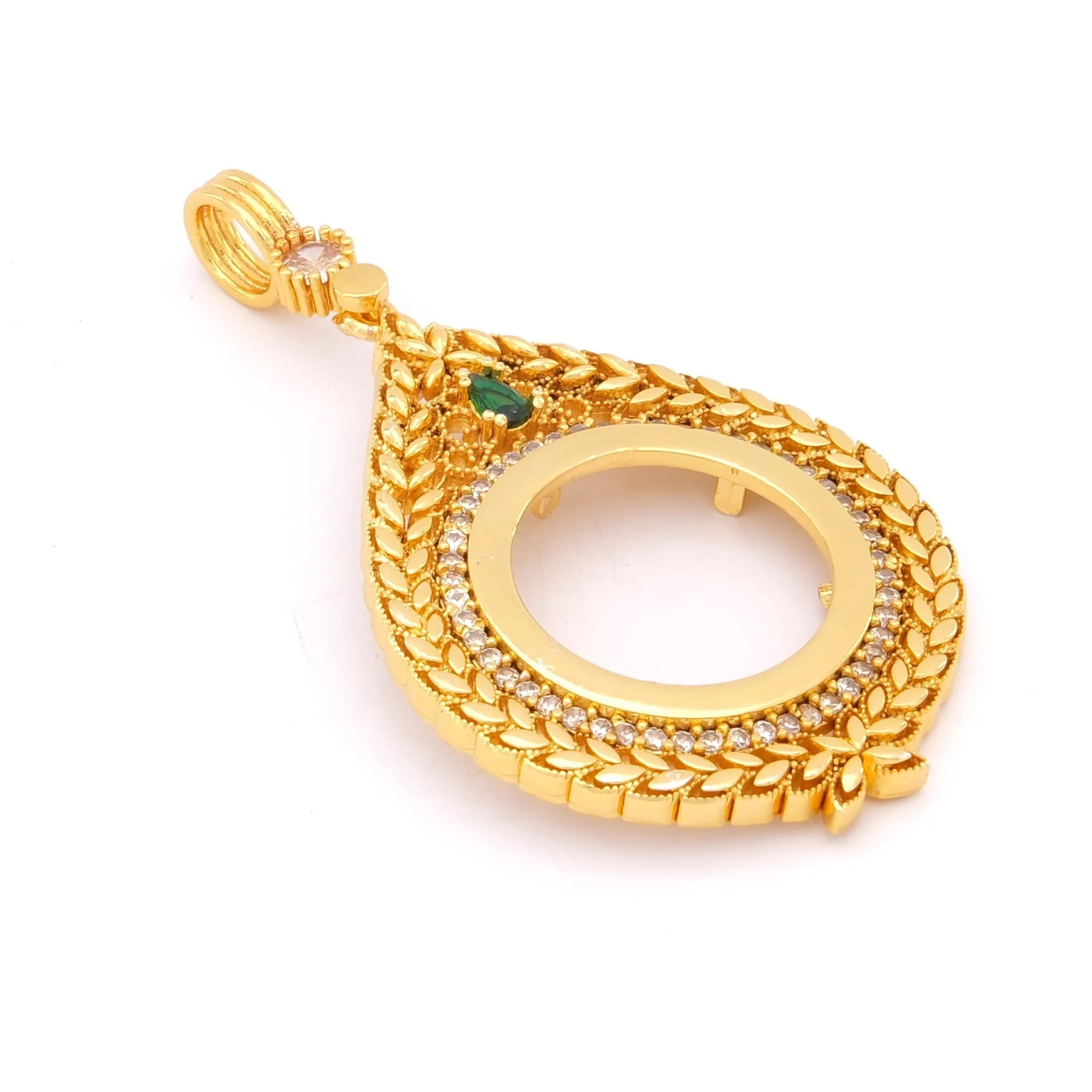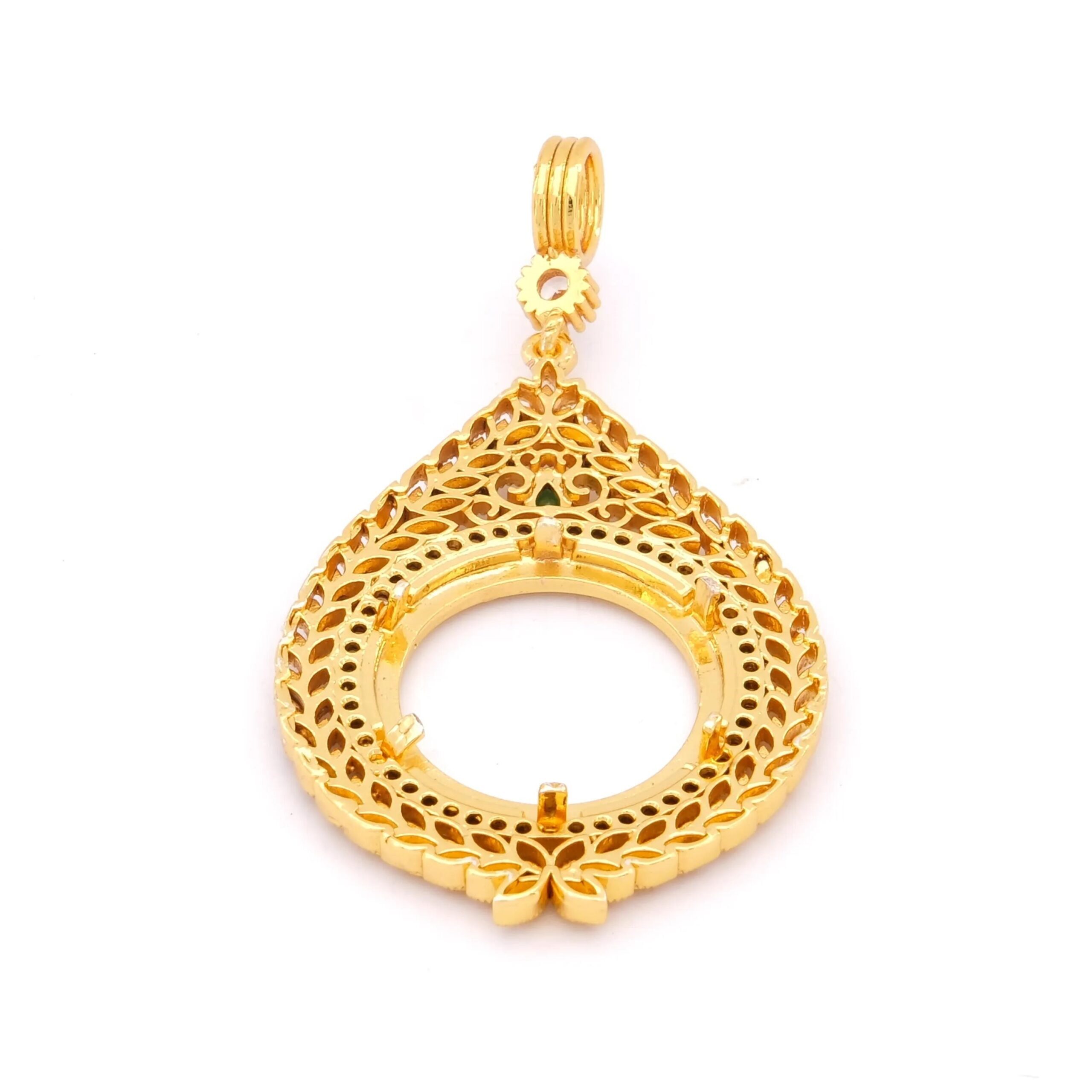 Yarım Altın Çerçeveli Kolye Ucu Altın Kaplama İşlemeli TGR-623