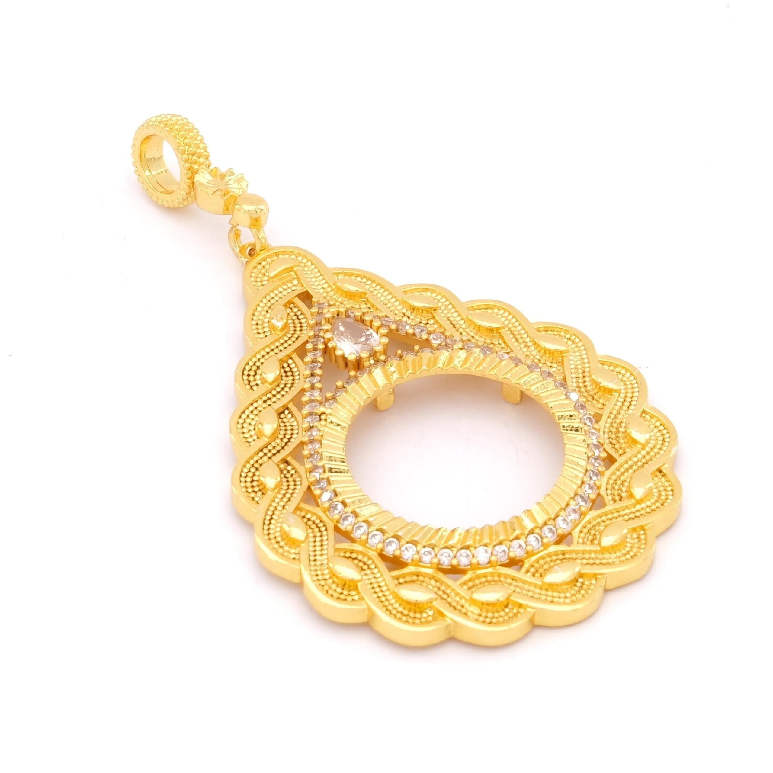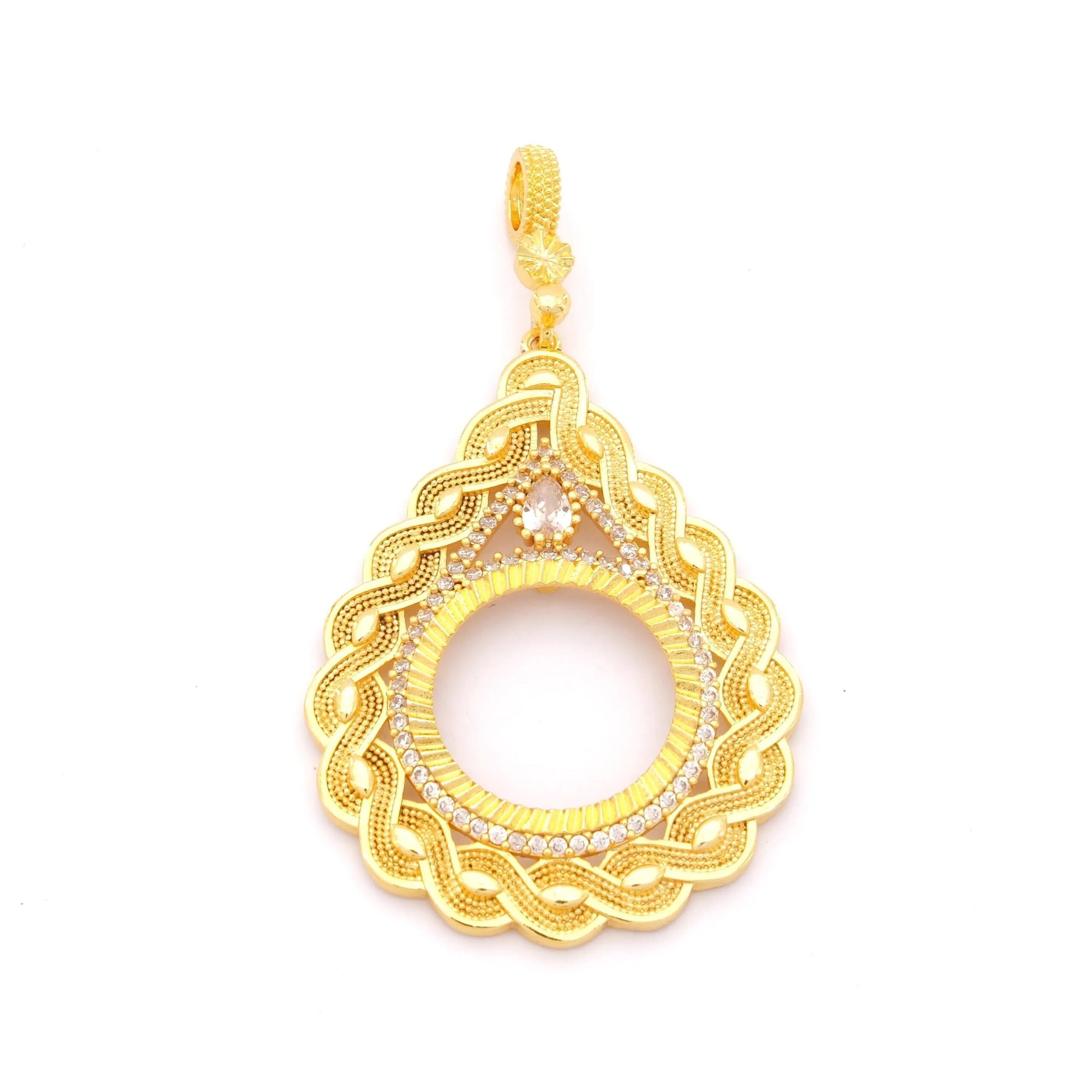 Yarım Altın Çerçeveli Kolye Ucu Altın Kaplama İşlemeli TGR-628