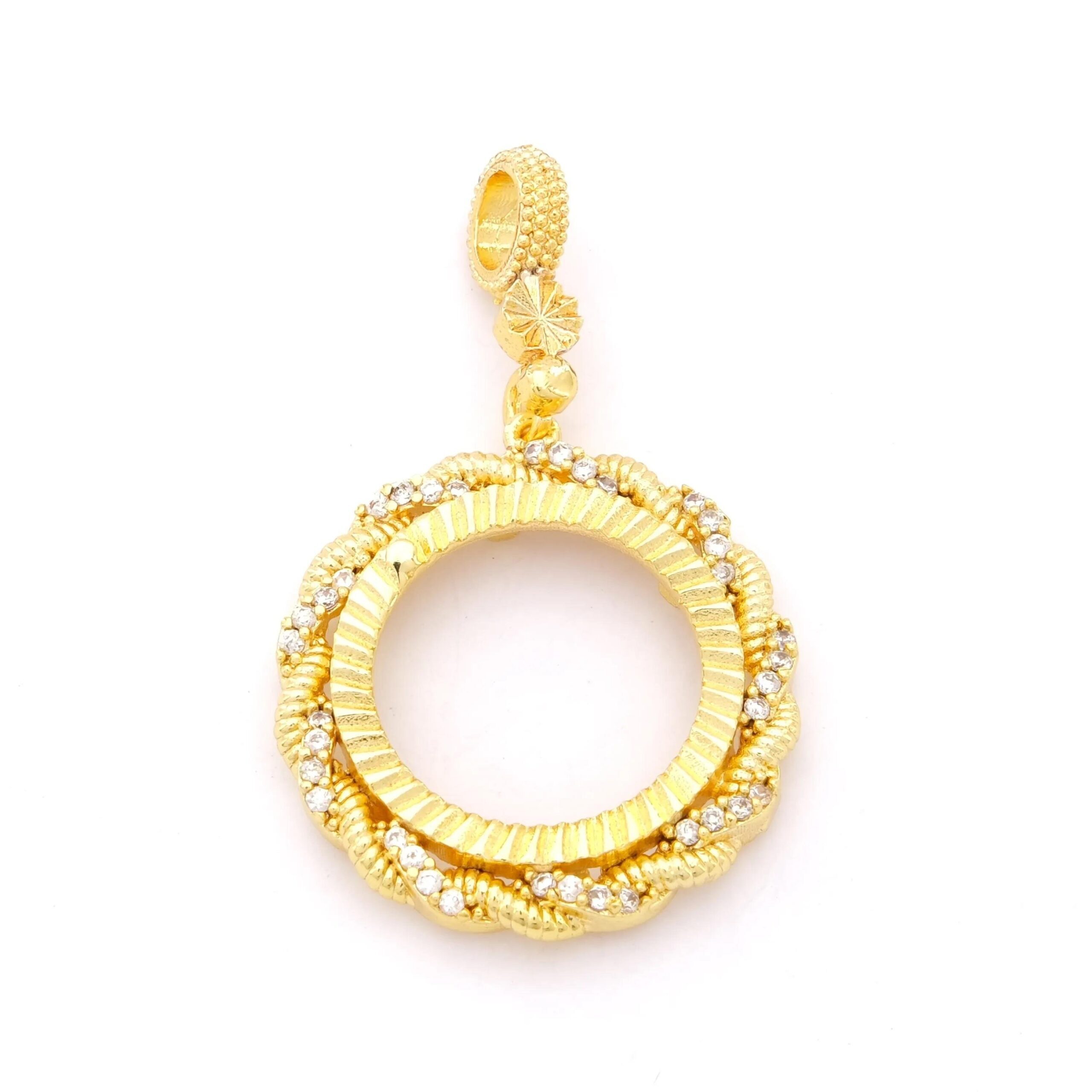 Yarım Altın Çerçeveli Kolye Ucu Altın Kaplama İşlemeli TGR-649 – 6 Ay Garantili – Hız