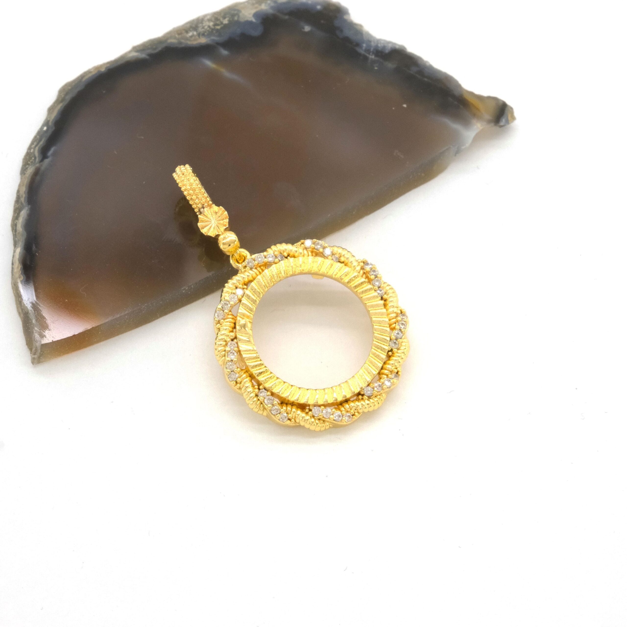 Yarım Altın Çerçeveli Kolye Ucu Altın Kaplama İşlemeli TGR-622