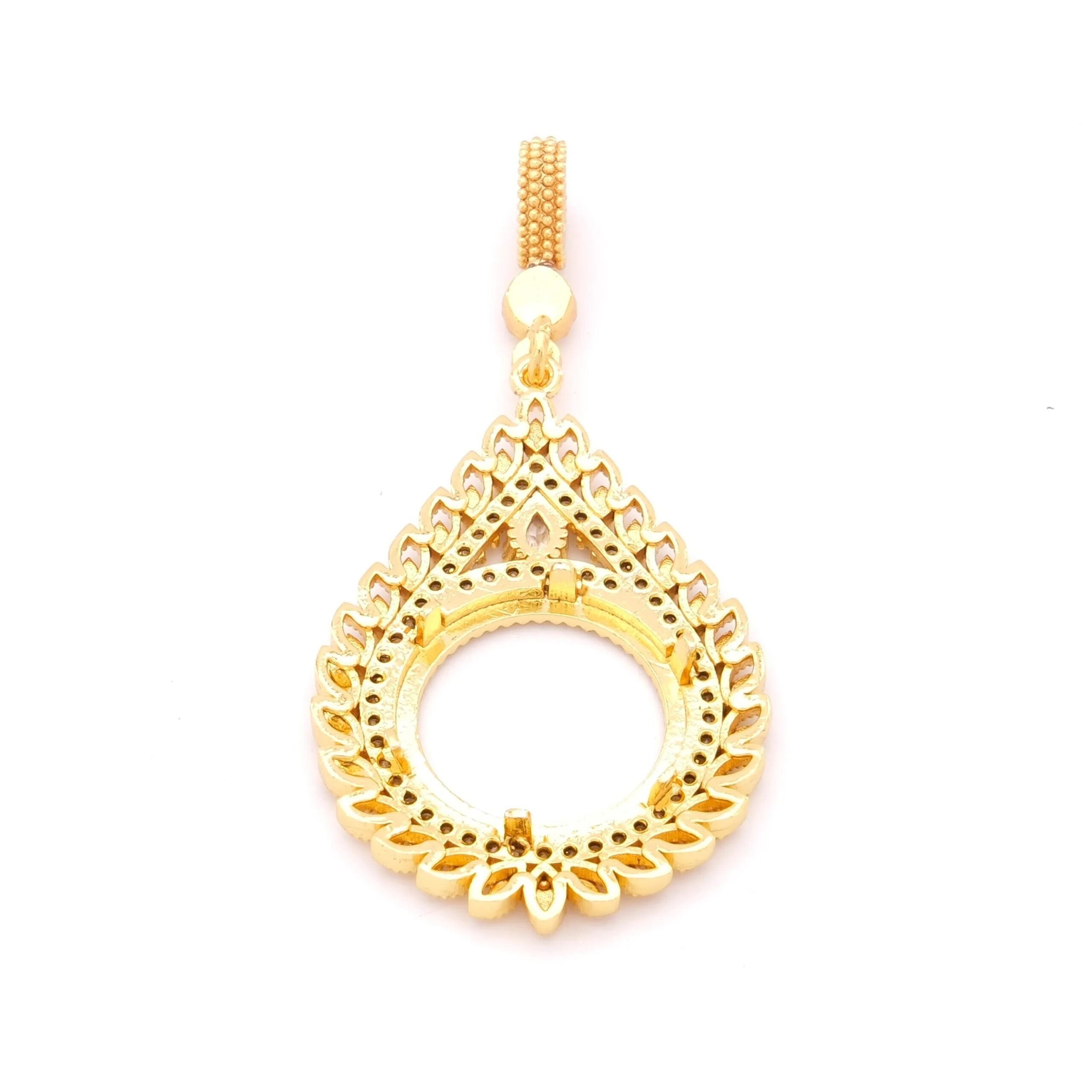 Yarım Altın Çerçeveli Kolye Ucu Altın Kaplama İşlemeli TGR-651